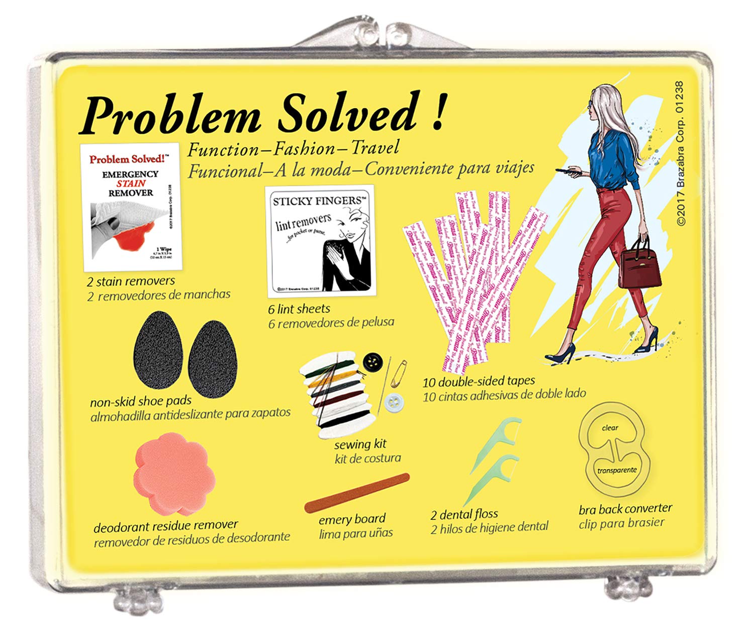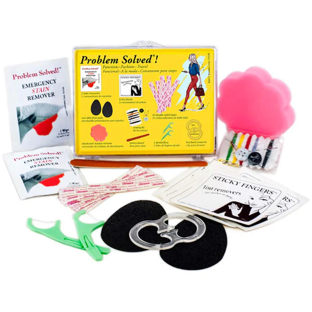 La versión económica del kit Problem Solved es un pequeño kit perfecto y práctico para prevenir cualquier emergencia de moda que pueda surgir en cualquier momento.
