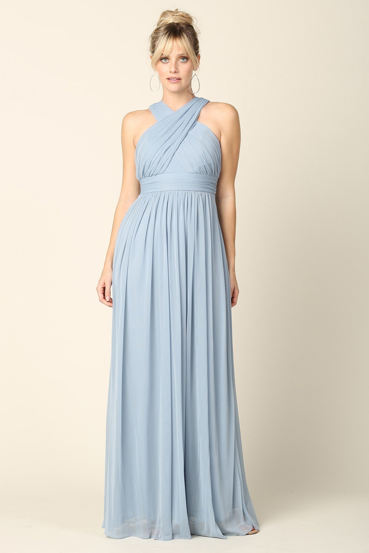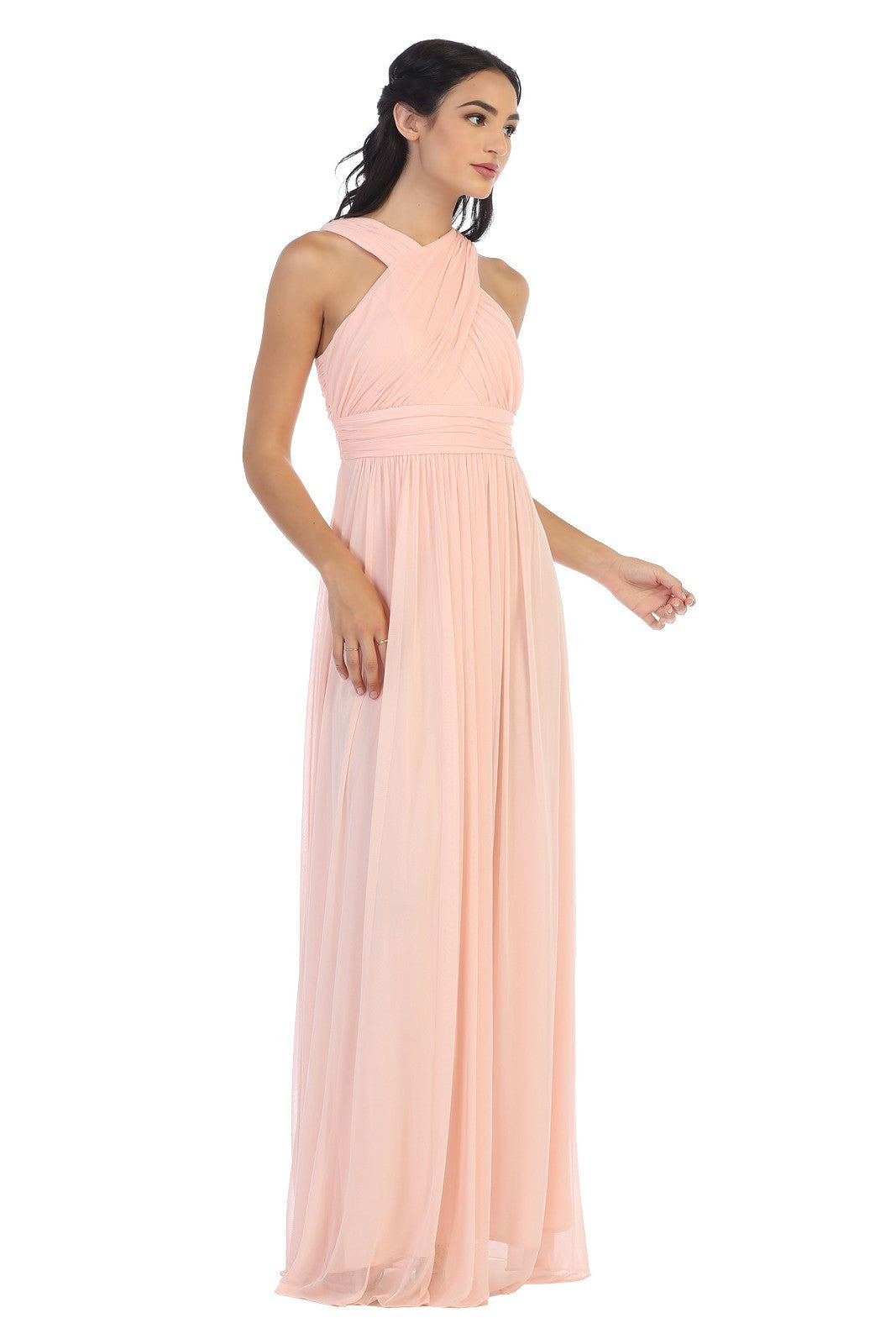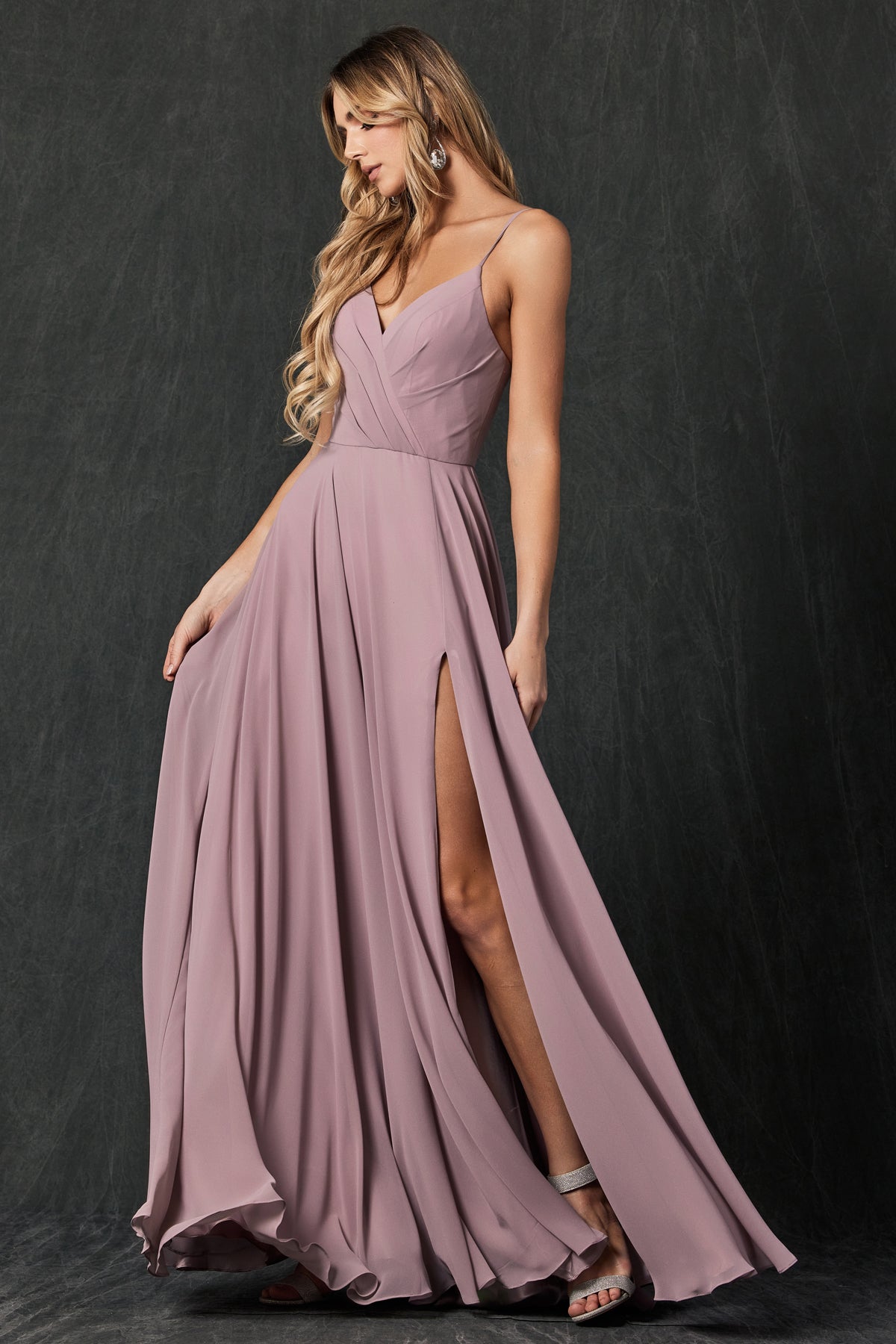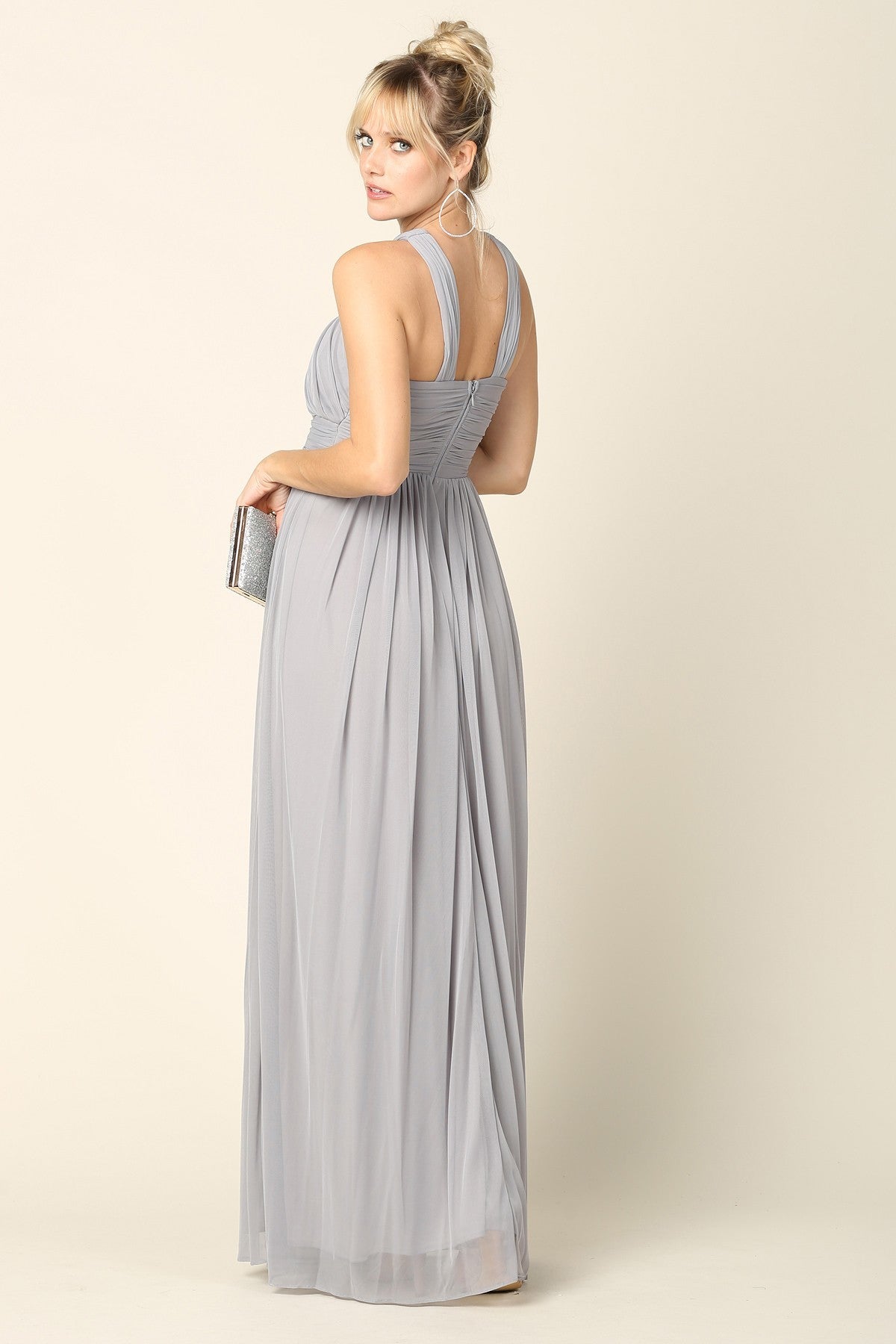Amelia Couture 477 Vestido largo sin mangas y cuello en V de gasa