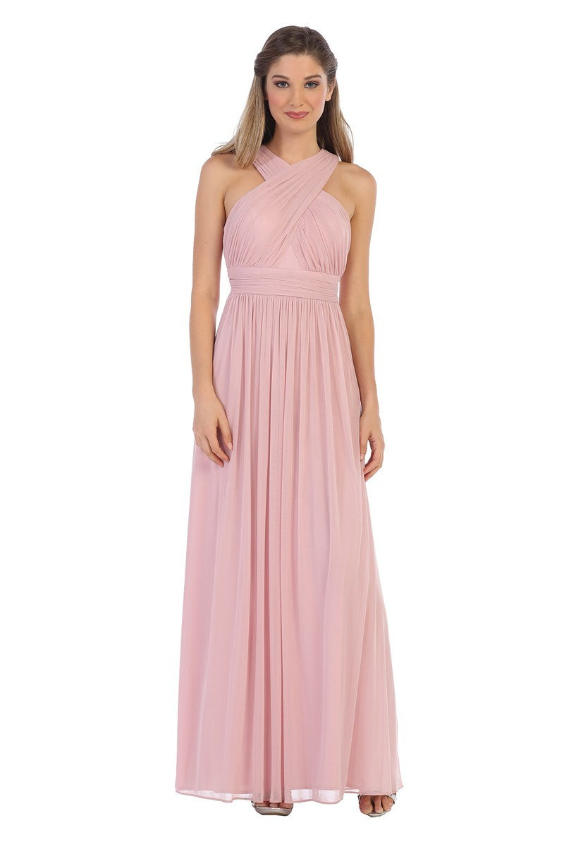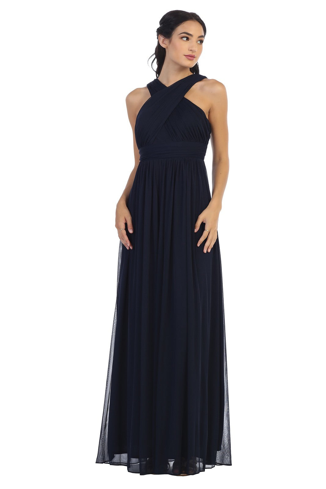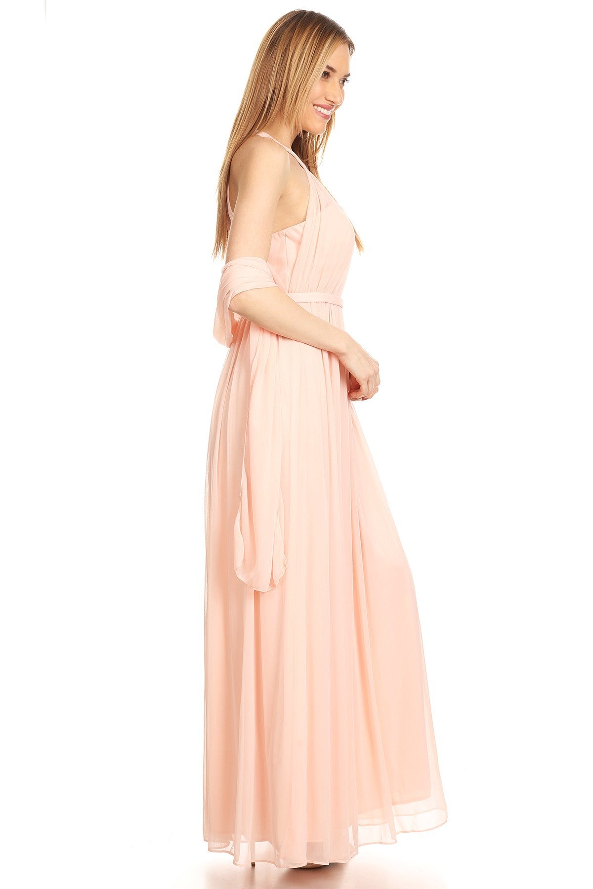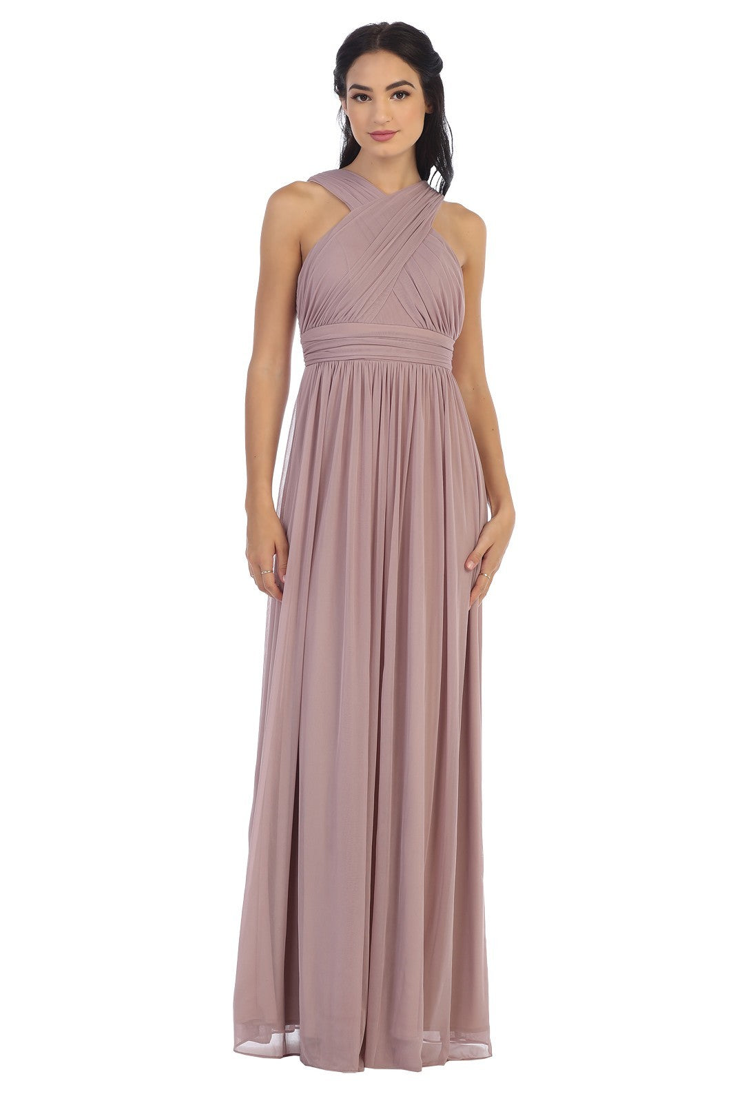 Amelia Couture 477 Vestido largo sin mangas y cuello en V de gasa
