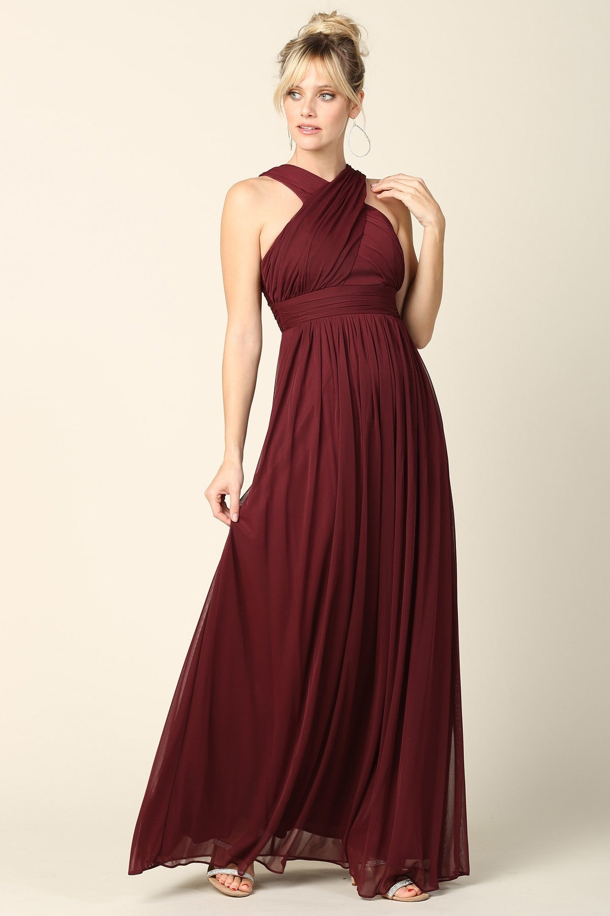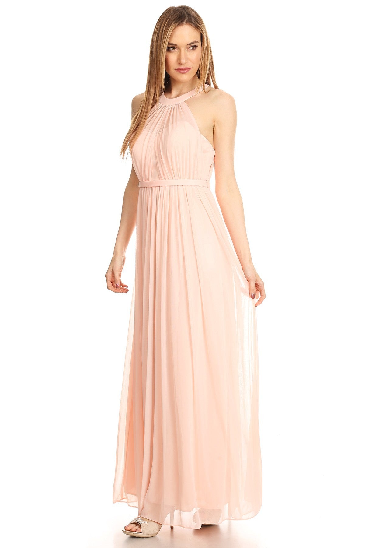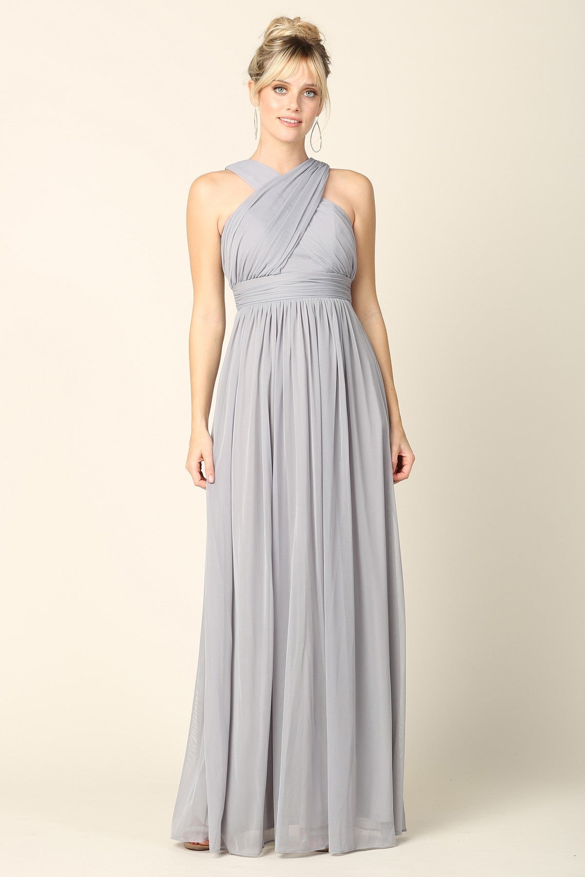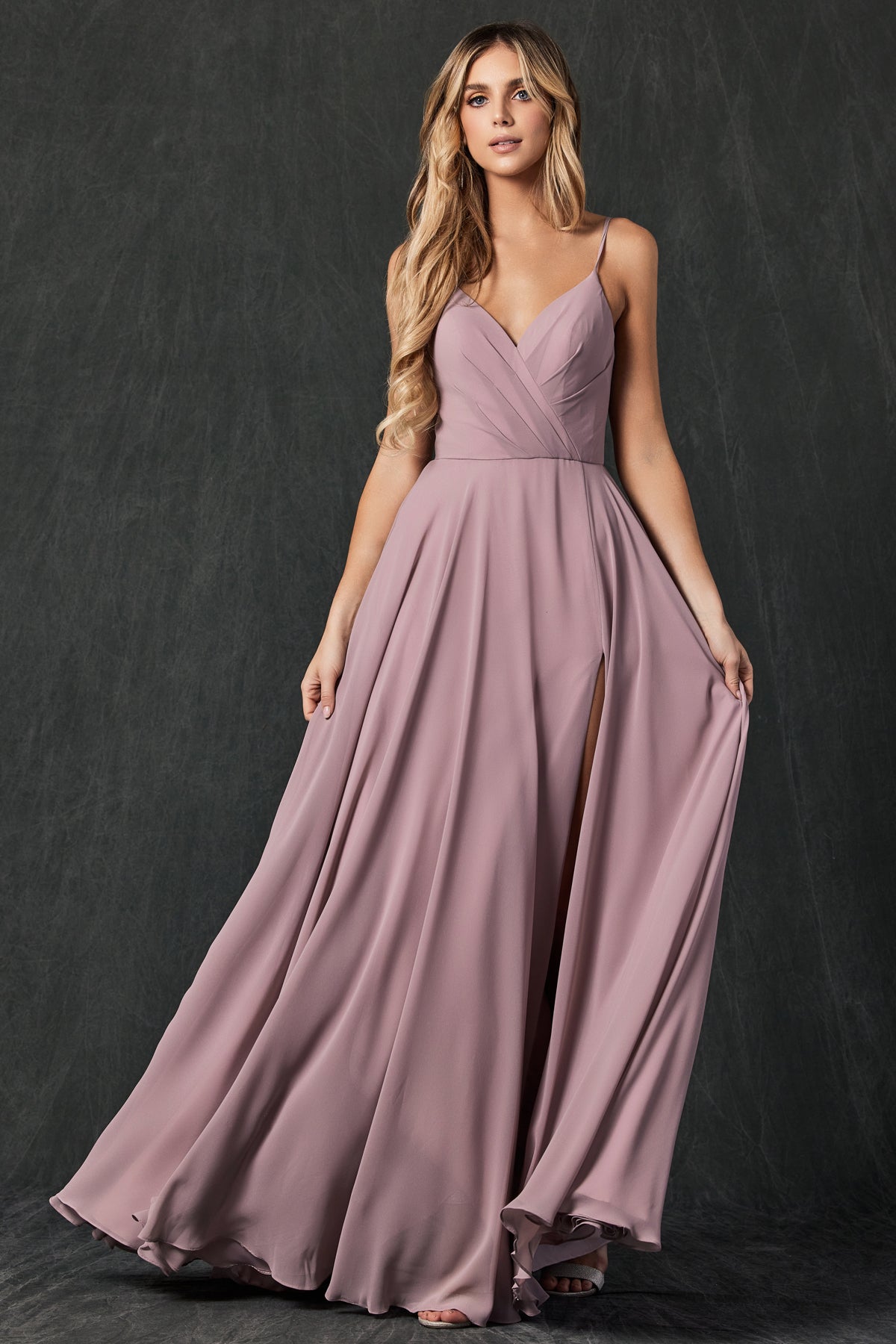 Amelia Couture 477 Vestido largo sin mangas y cuello en V de gasa
