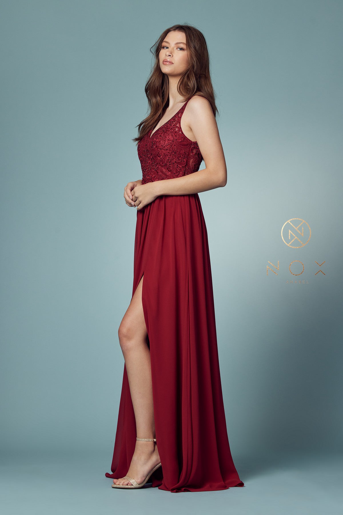 Vestido largo con cuerpo bordado de Nox Anabel Y299