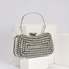 Elegante Bolso de Noche con Pedrería y Cadenas Decorativas Negro