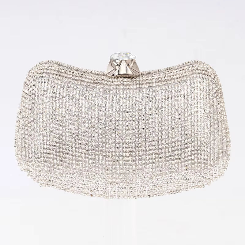 Clutch Pequeño con Cristales y Diamantes, Asa de Metal Estilo Cubo