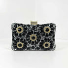 Bolso de Moda Dorado con Perlas Irregulares y Flecos Negro
