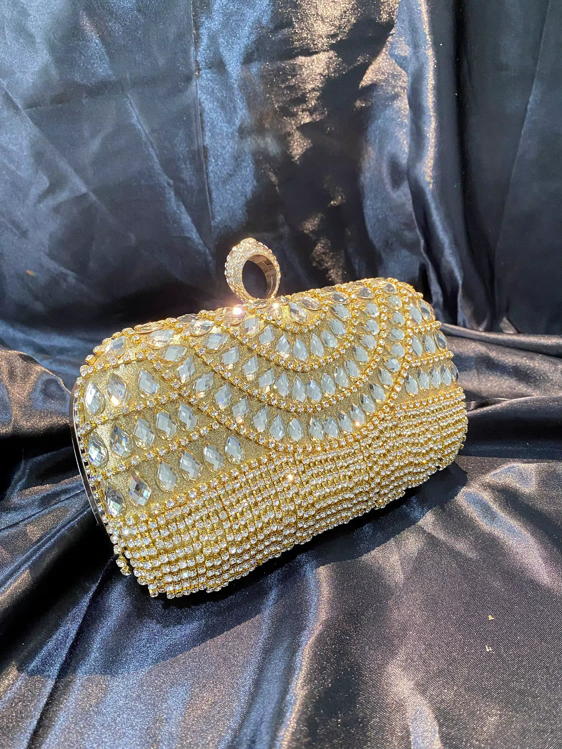 Bolso de Pedrería de Alta Gama con Diamantes Incrustados Dorado