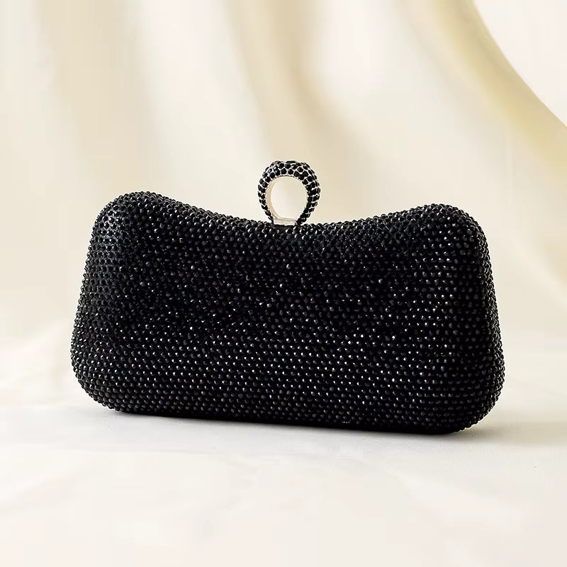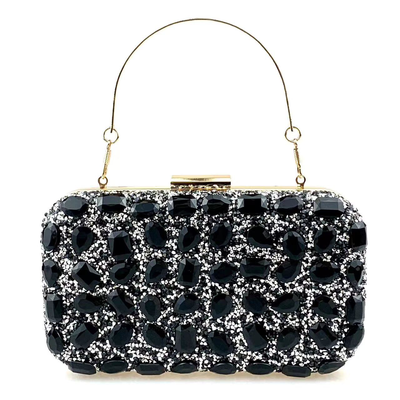 Bolso de Fiesta con Pedrería y Brillo Negro