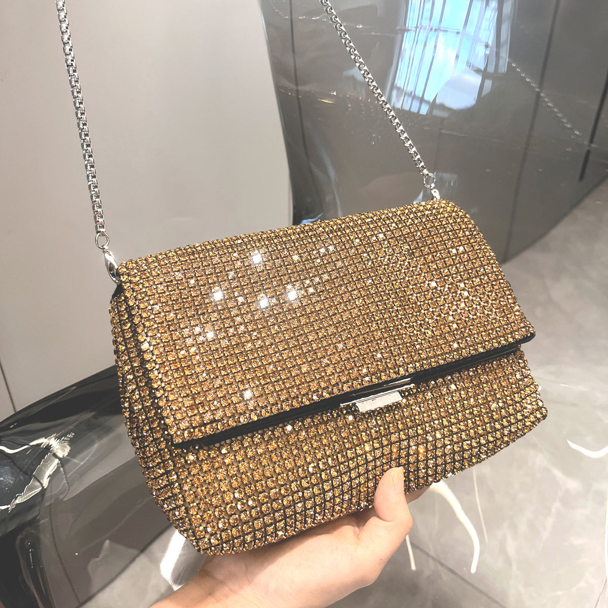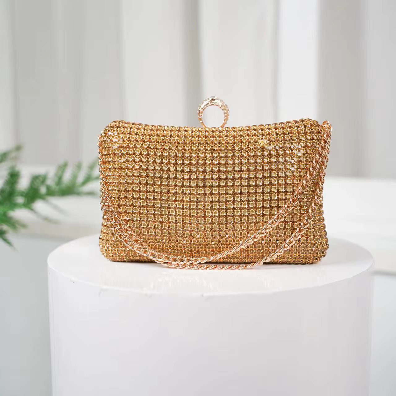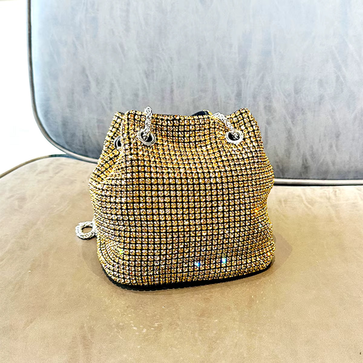 Bolso de Cristal con Pedrería de Lujo "Bling Bling" Dorado