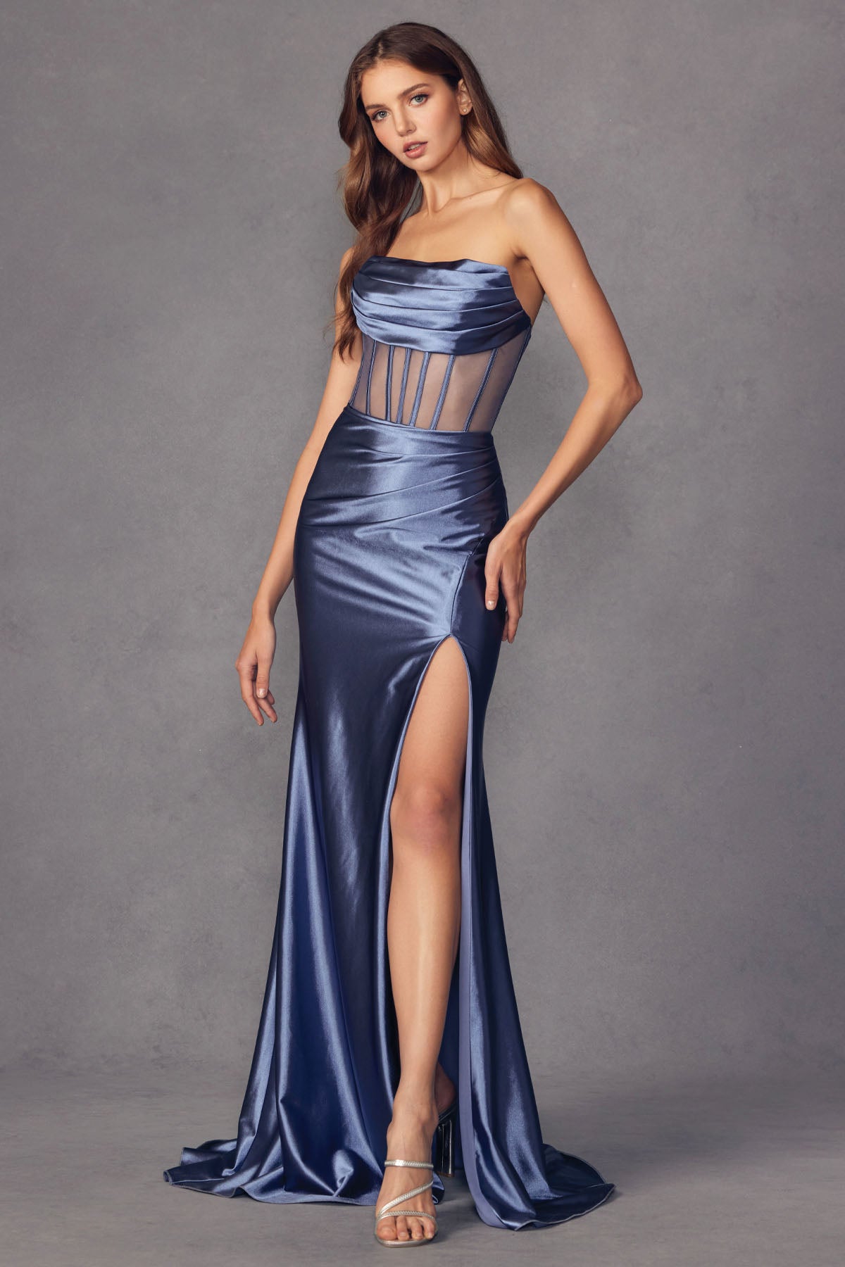 Vestido ajustado sin tirantes con aberturas de Juliet 2416