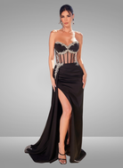 ¡Caída como una diosa con este impresionante vestido de noche de satén! Esta creación verdaderamente lujosa presenta una silueta ajustada y una suntuosa confección de satén para hacerte sentir como la realeza. Hay un corpiño transparente con un romántico escote corazón adornado en plata y cintura lateral para una apariencia verdaderamente llamativa. El toque final es la abertura en la pierna con un fajín fluido que le da un toque de glamour. Ya sea que asista a una boda formal o a una fiesta de graduación, esta es la manera perfecta de hacer una declaración. ¡Ponte este impresionante vestido y prepárate para deslumbrar!