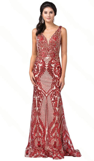 Vestido sin mangas de encaje con escote en V y trompeta Dancing Queen 2620