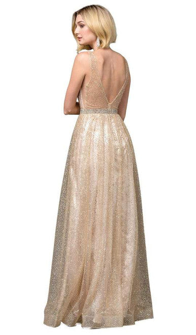 Vestido Largo Sin Mangas Cuello en V Adornado Dancing Queen 2647