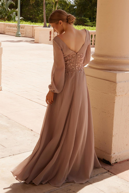Ladivine CD0938 - Vestido de Prom con Mangas Largas Transparentes y Apliques de Encaje
