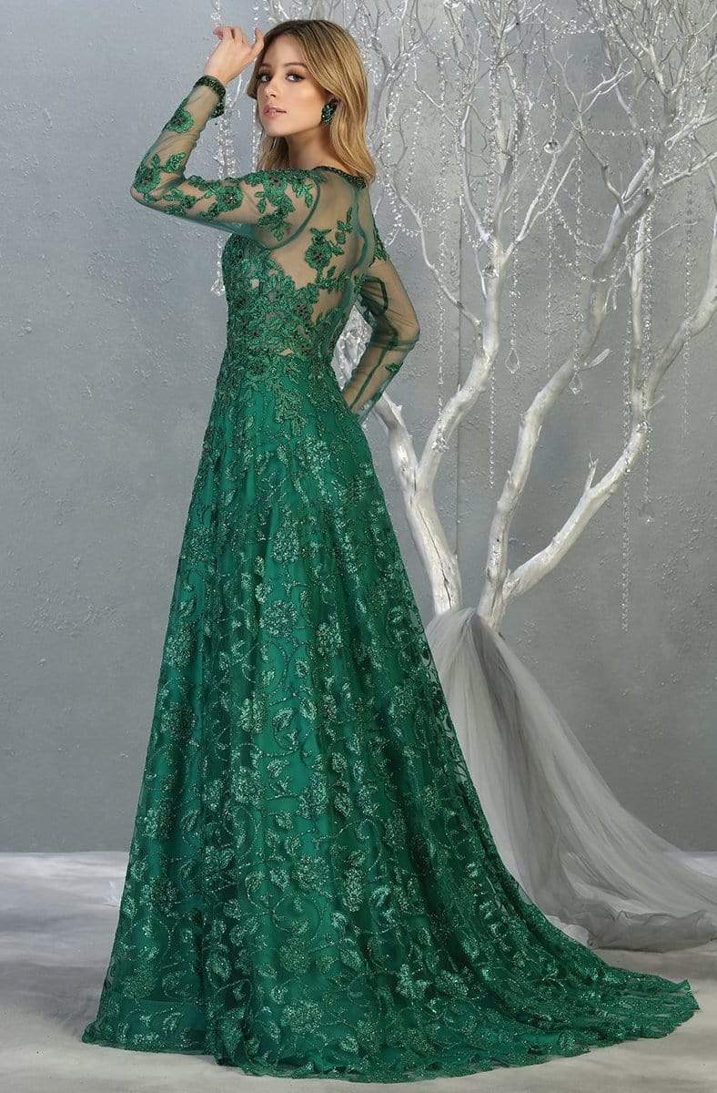 Vestido de noche con escote barco y escote ilusión MQ1847