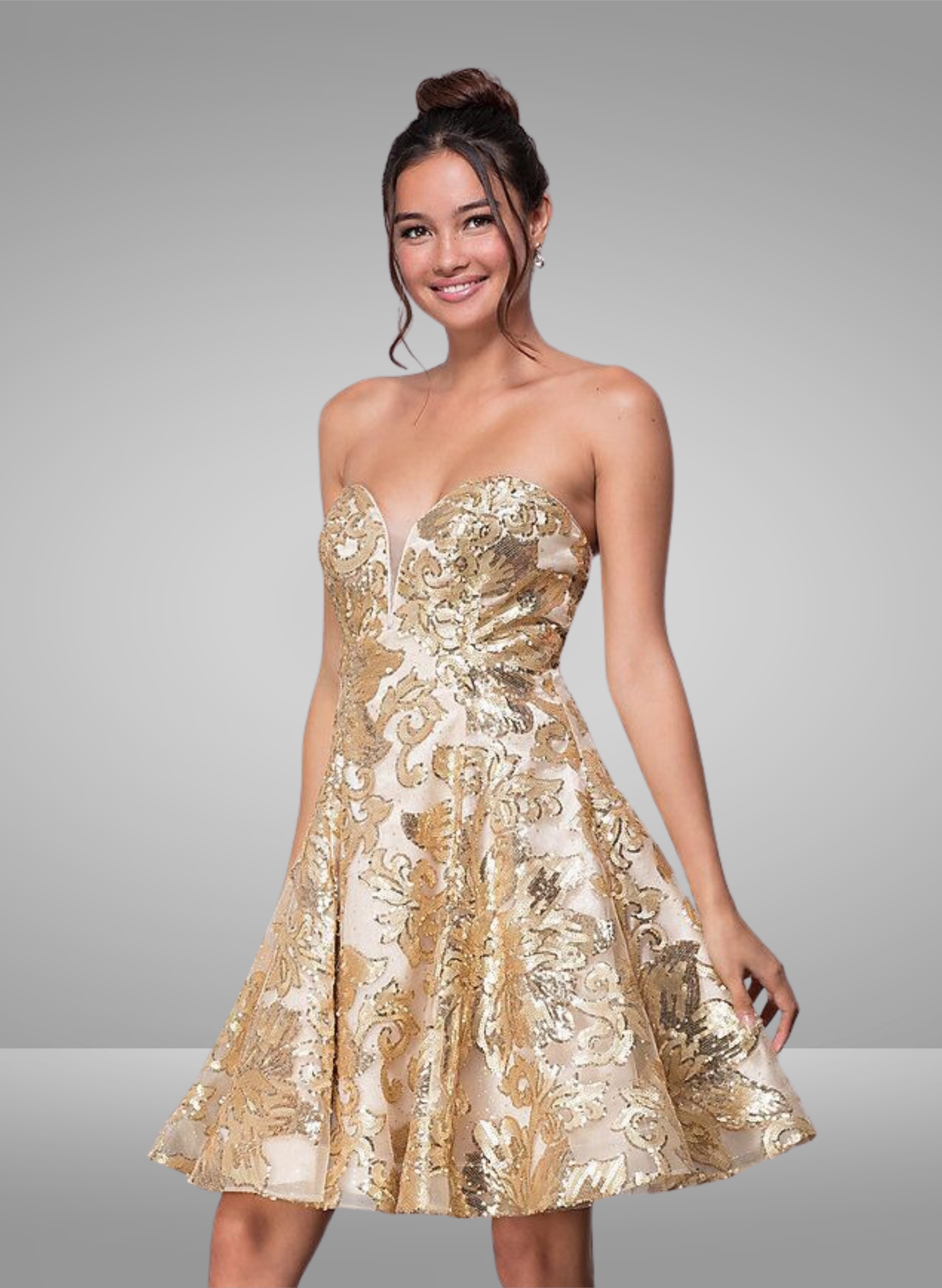 Vestido de fiesta con escote corazón sin tirantes y largo hasta el muslo