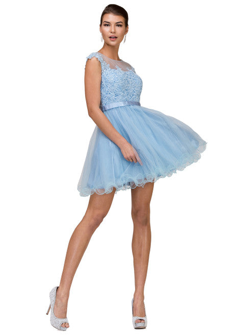 Vestido con cuello joya y mangas casquillo Dancing Queen 2153