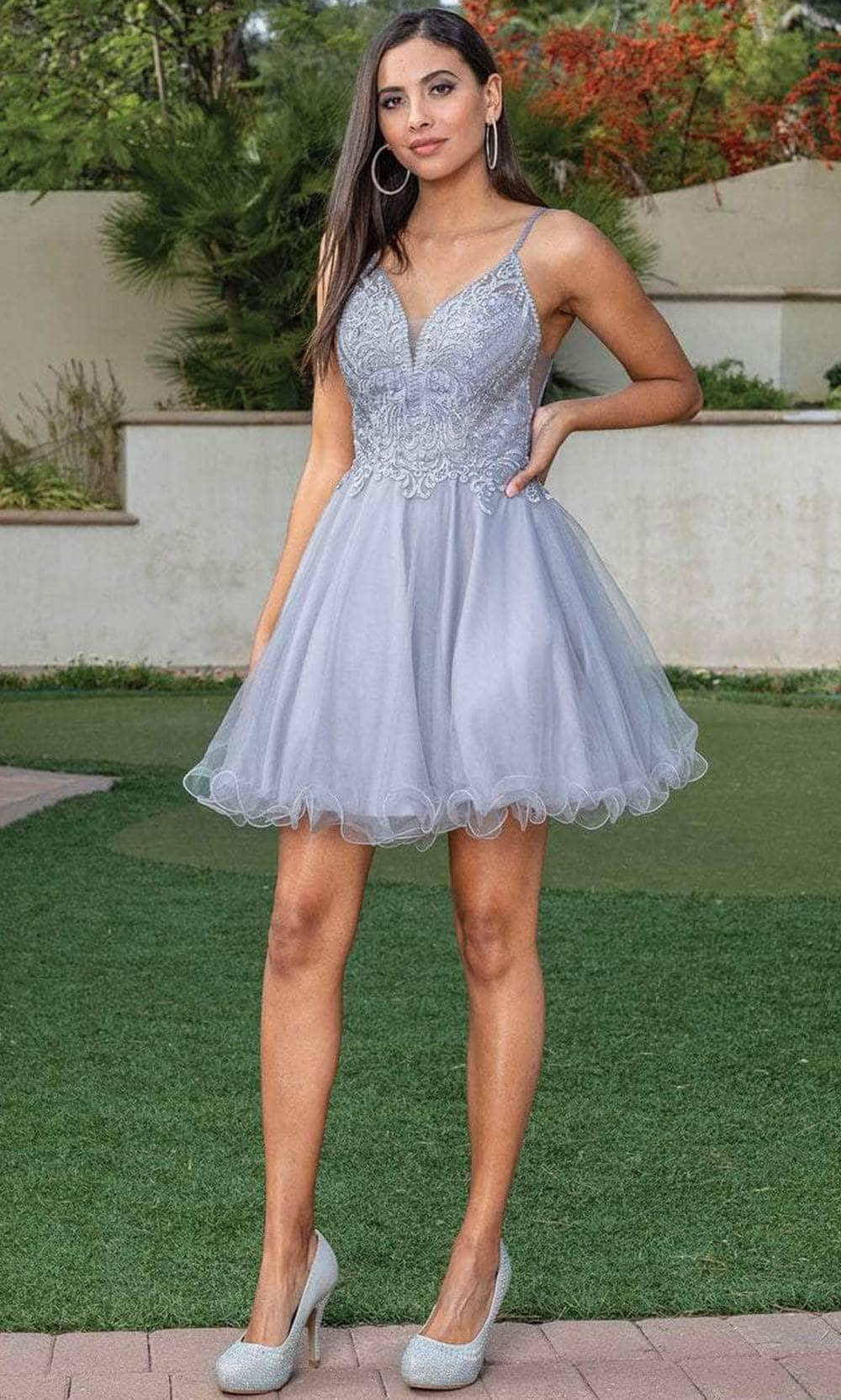 Prepárate para mostrar tu lado más glamuroso con el vestido de cóctel Dancing Queen 3308. Deslumbrante adorno de abalorios en un patrón intrincado embellece el corpiño sin mangas, muestra un escote en V con inserción de malla transparente y tirantes finos. Un cierre de cremallera central asegura la espalda en V medio abierta. La falda de línea A está diseñada con capas de tul y termina en un dobladillo corto con un atractivo detalle de rizos enrollados. La noche es tuya en una espectacular creación de Dancing Queen. Las modelos llevan los colores Bahama Blue, Hunter Green, Lilac, Off White y Silver.