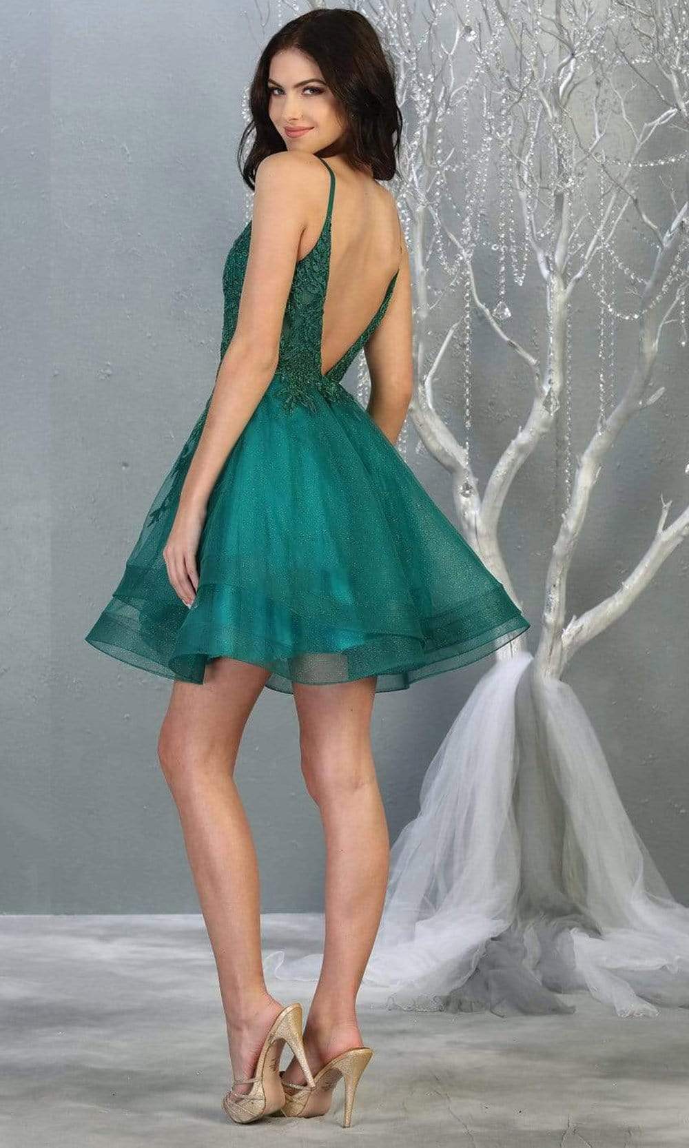 Cautive a todos con su llamativo encanto en este vestido de fiesta oh! tan bonito May Queen MQ1816. Este vestido de cóctel luce un corpiño transparente embellecido con escote en V sujeto por tirantes de espagueti a la vez que hace alarde de una espalda escotada en forma de V. La falda se abre en una atrevida silueta de corte-A a medio muslo con un dobladillo de crin de doble capa. Adopte un estilo glamuroso que hipnotizará a todos con esta creación de May Queen. Encuentre más vestidos de cóctel.