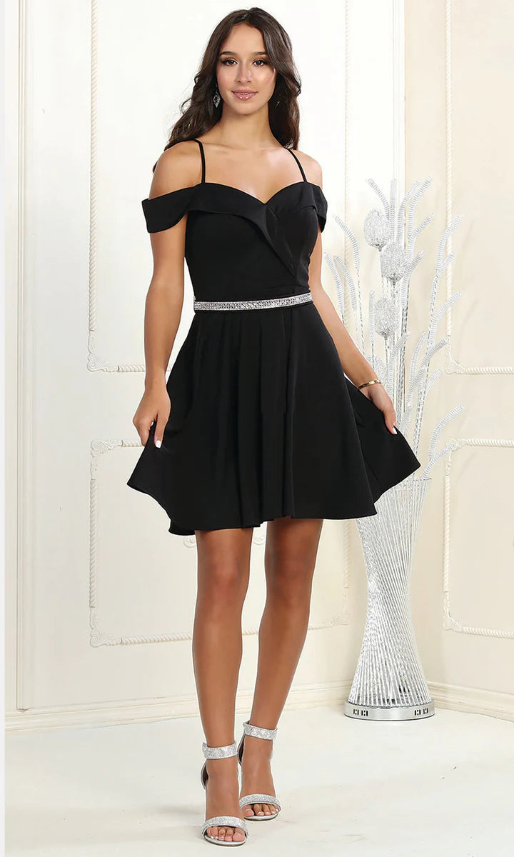 Asombre a todos con el estilo de este impresionante vestido de cóctel de May Queen MQ1916. Este elegante conjunto presenta un escote corazón de hombros descubiertos con un fino tirante que crea un seductor detalle de hombros fríos. Un diseño de tiro medio acentúa la espalda mientras se asegura con un cierre de cremallera central. Ceñida con una banda de cuentas de cristal a lo largo de la cintura, la fluida falda Corte-A termina en un dobladillo a medio muslo. Revele un estilo atemporal con este asombroso conjunto de la creación MQ1916 de May Queen. Las modelos llevan los colores Borgoña y Champán.