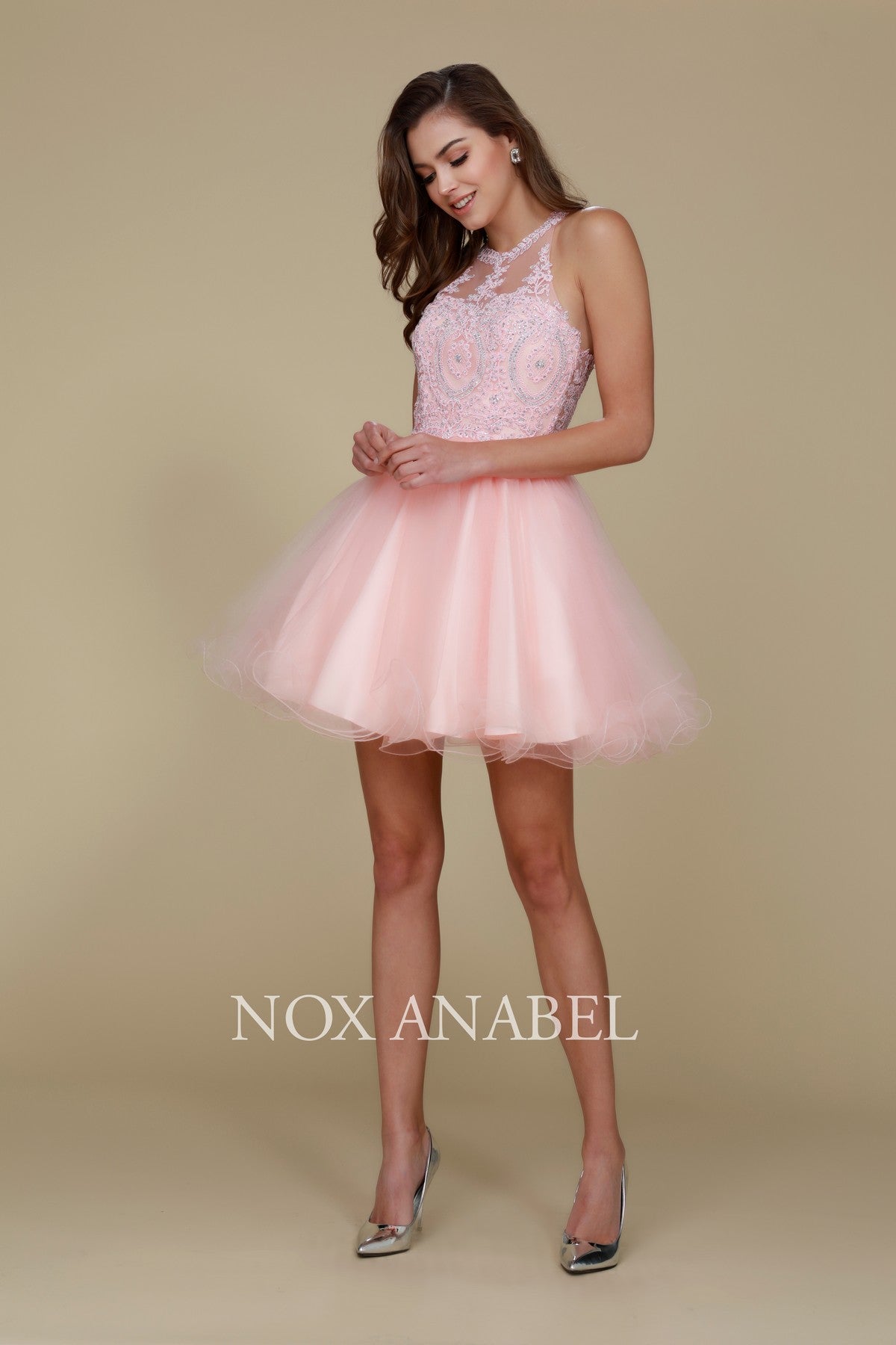 Vestido corto de tul con corpiño bordado de Nox Anabel B652