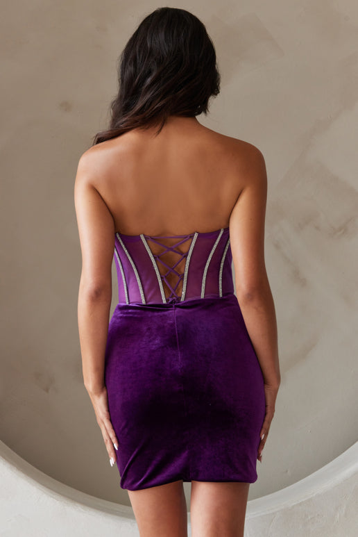 Vestido corto de terciopelo con corsé y sin tirantes de Amelia Couture 5056S