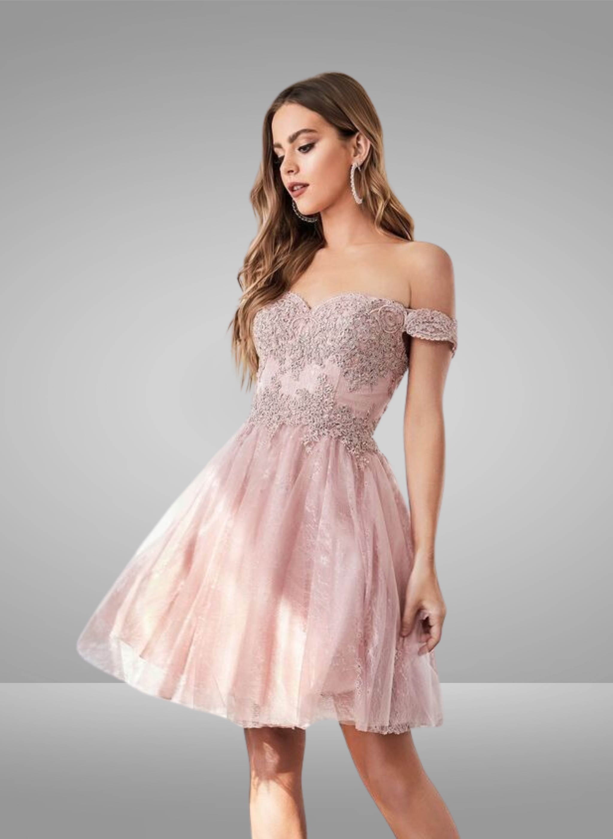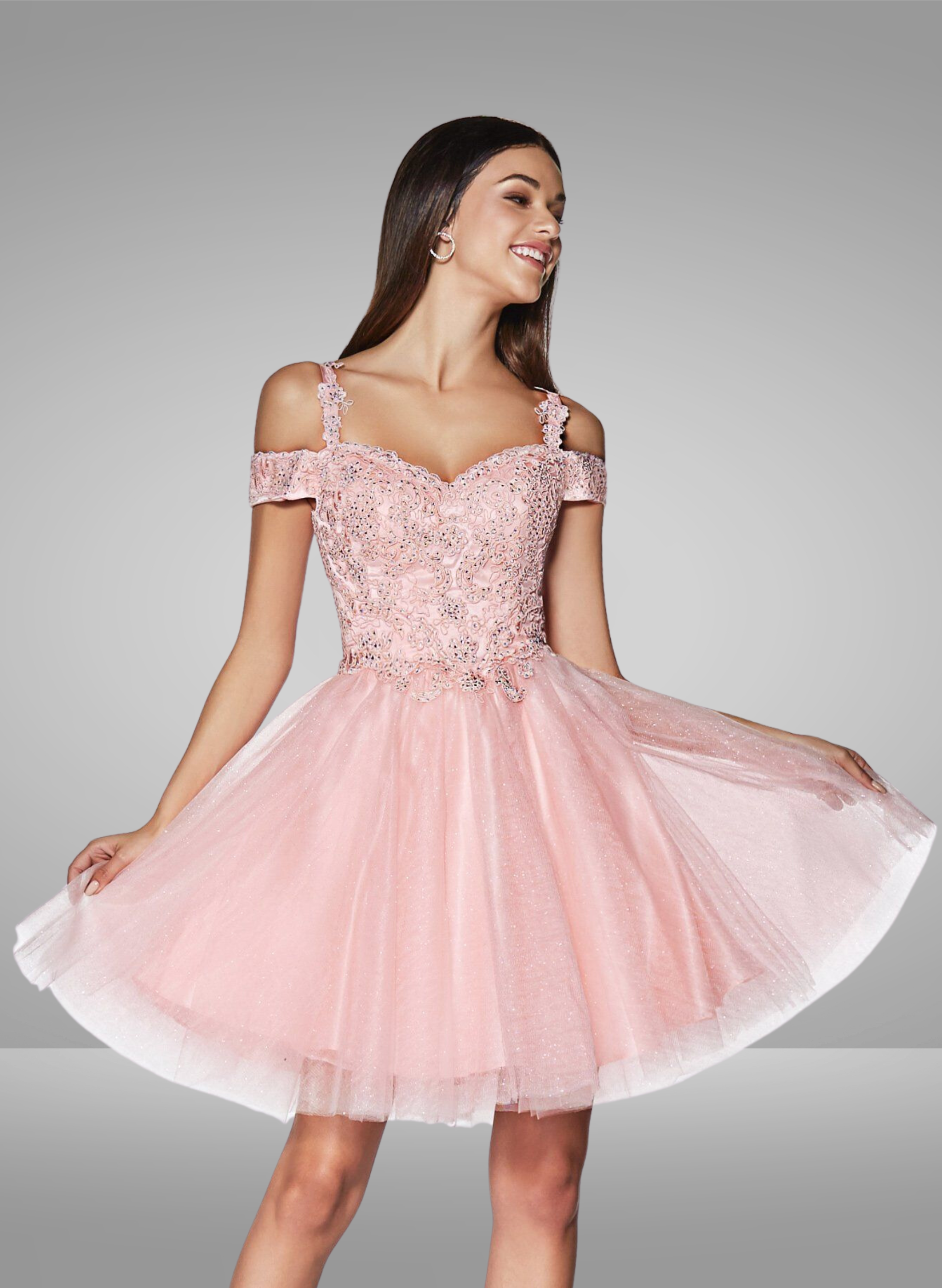Vestido corto con hombros descubiertos y lentejuelas de Ladivine CC461
