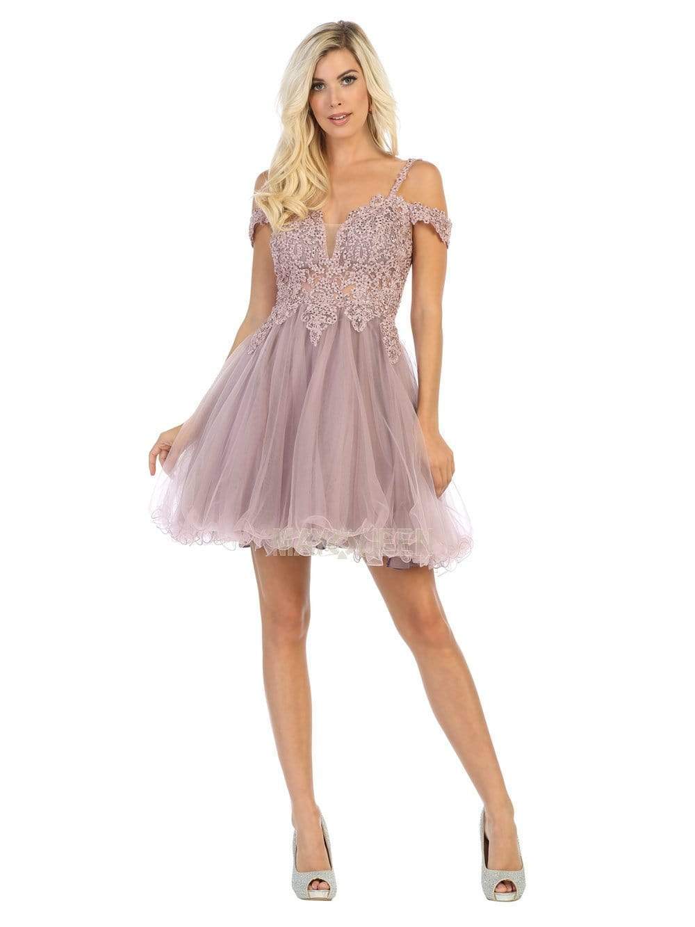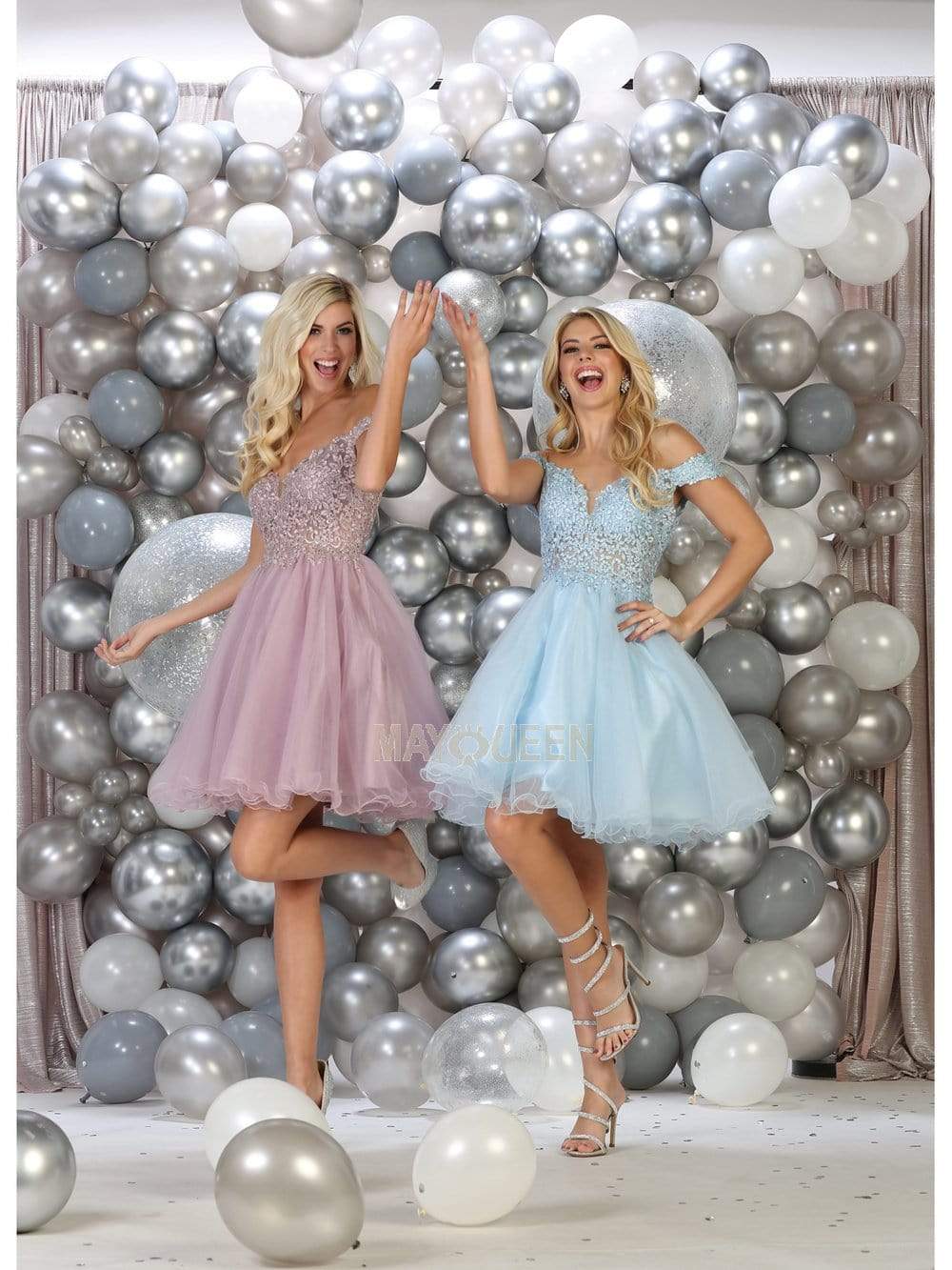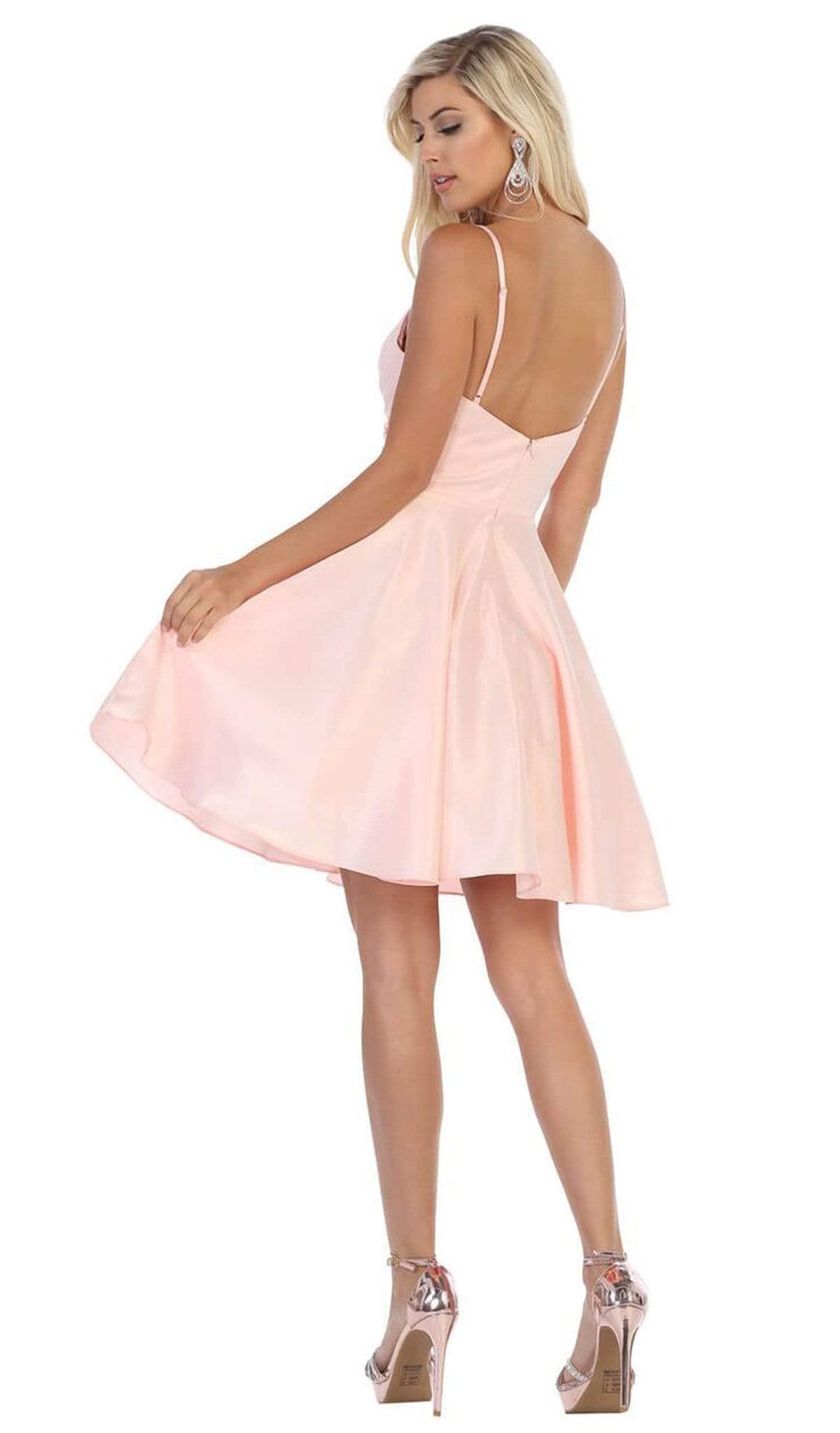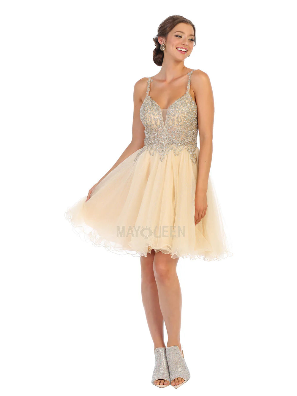 Bead Applique Vestido Corto Cuello en V Profundo de Nox Anabel G786