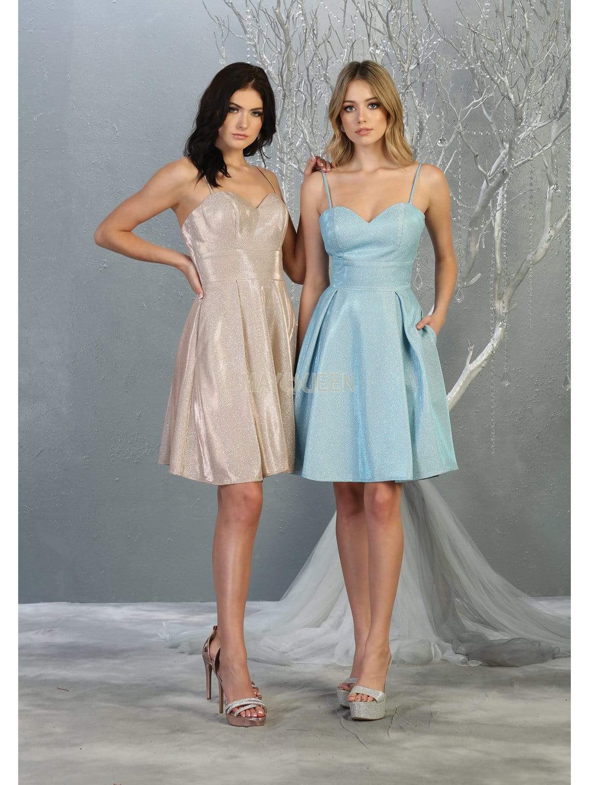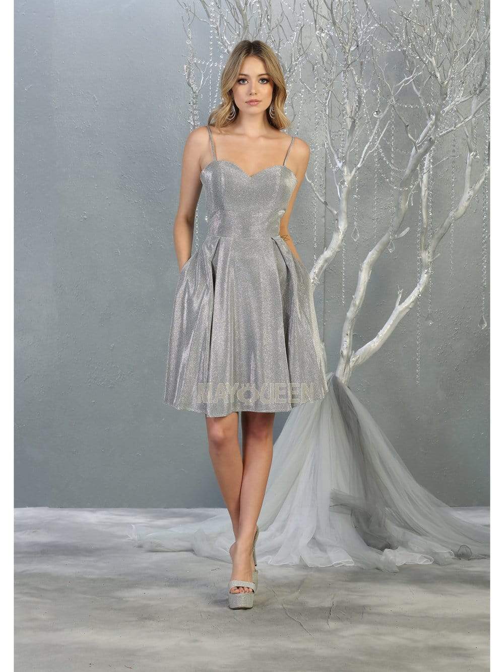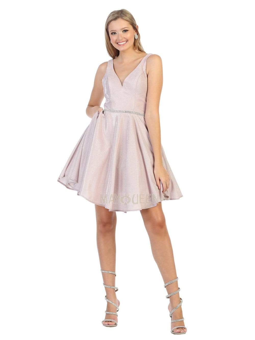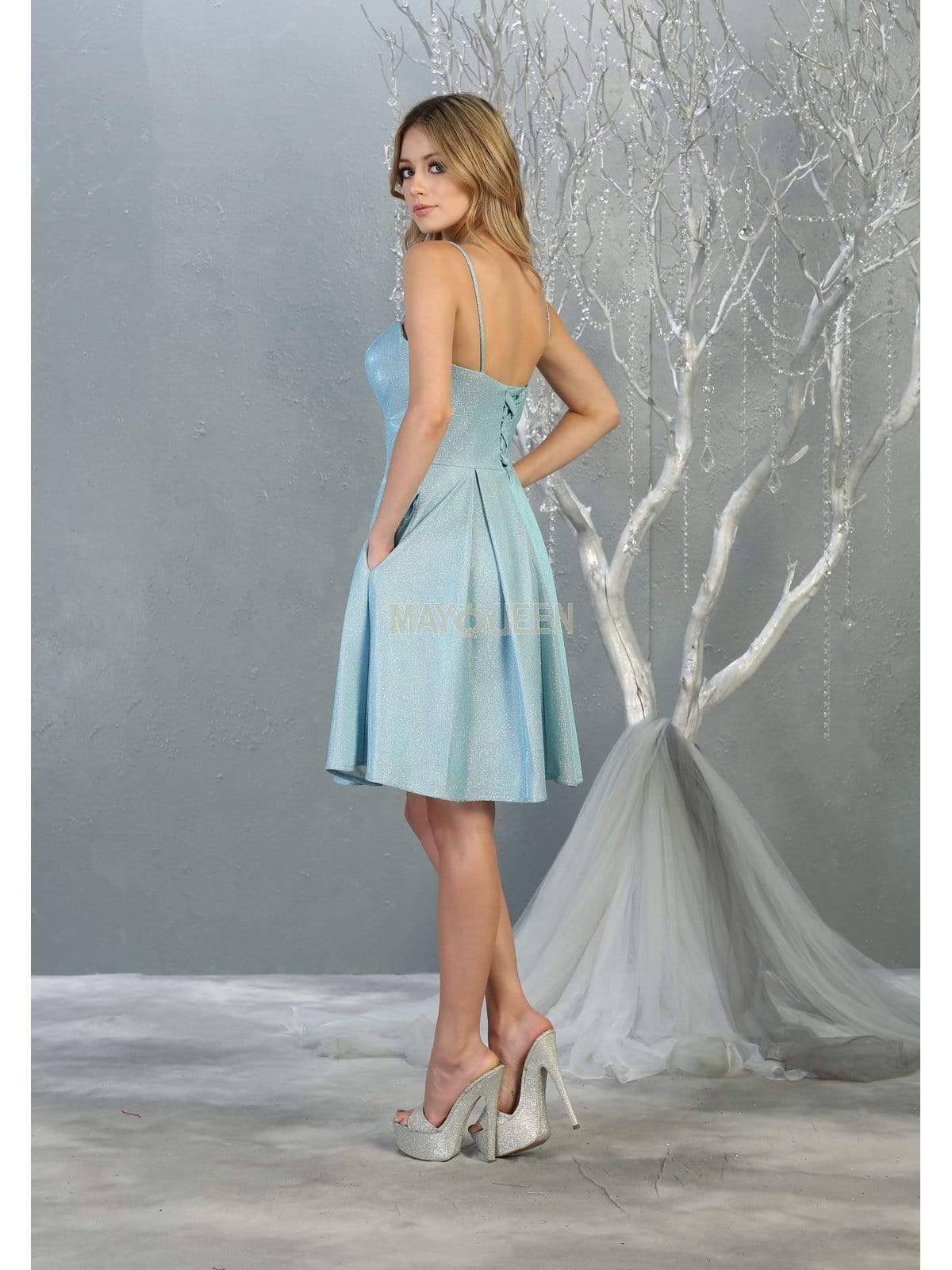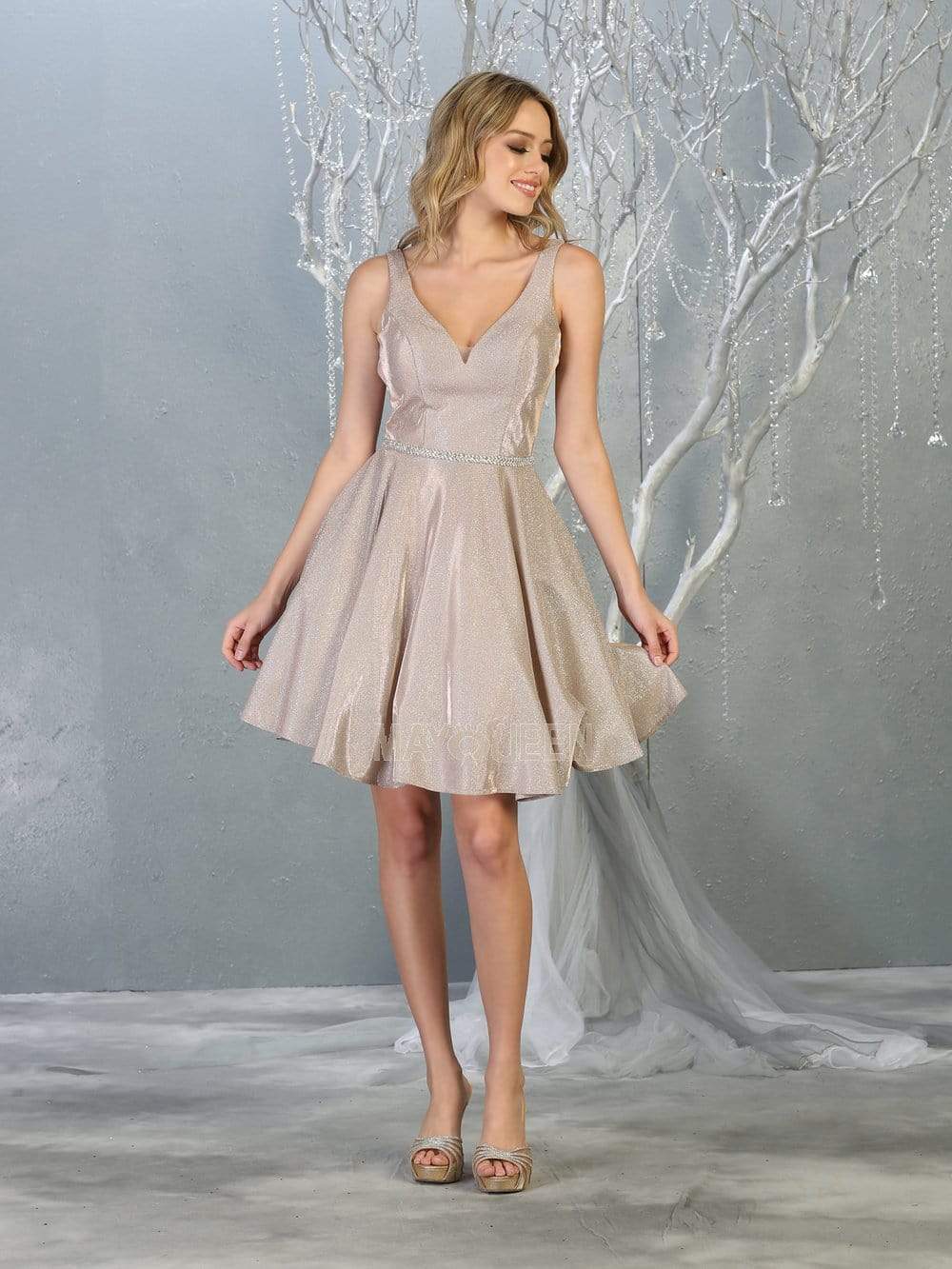 Vestido Corto Cuello en V Profundo Corte-A con Purpurina MQ1702