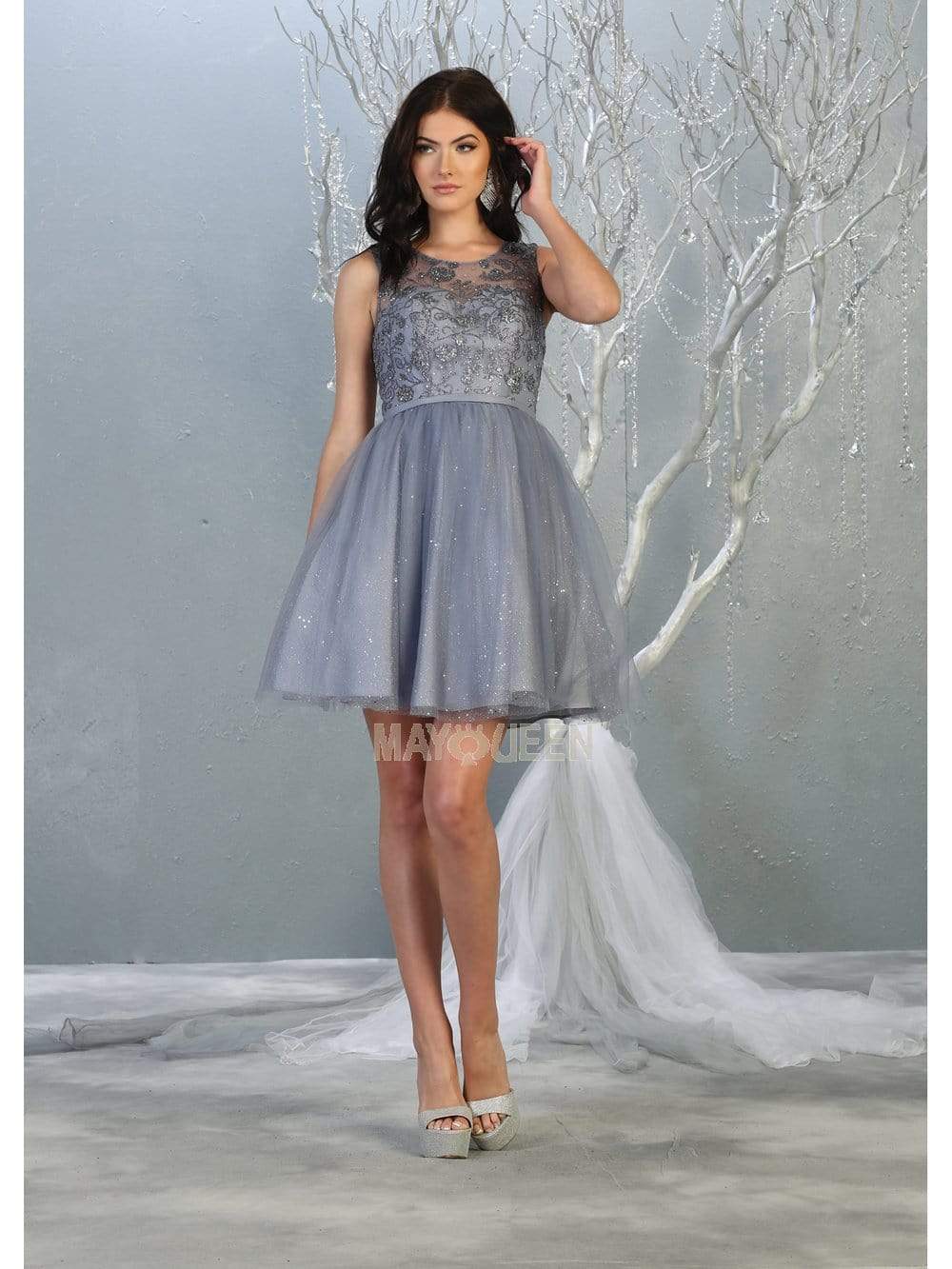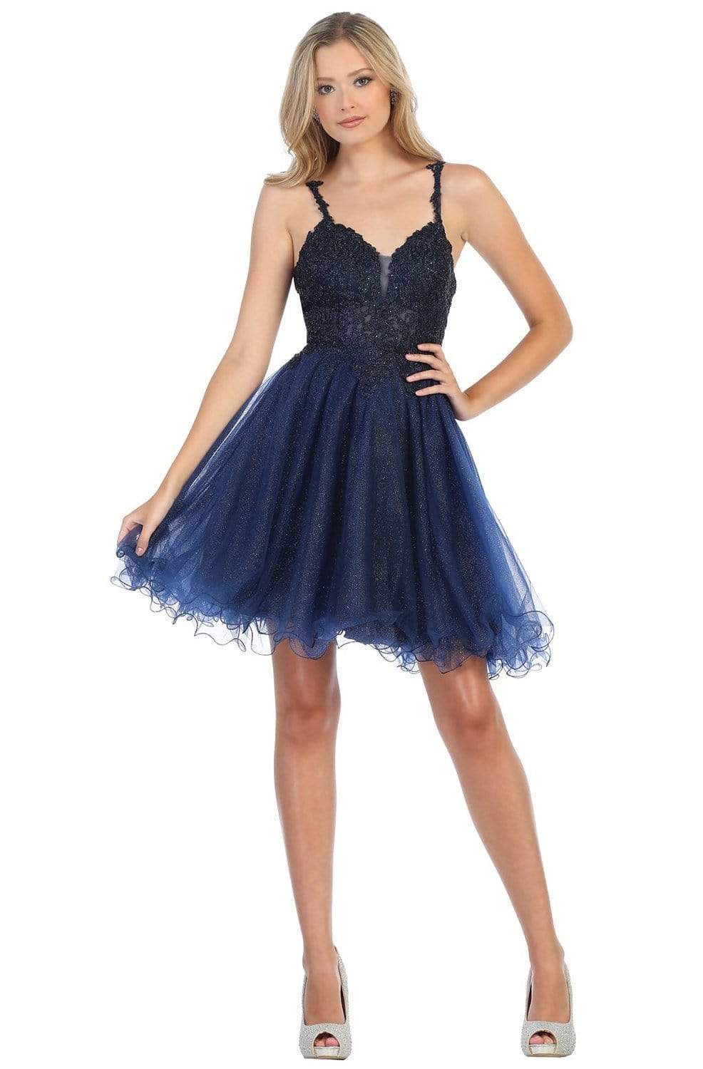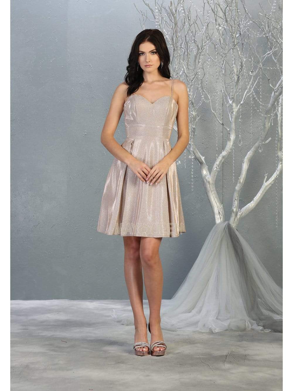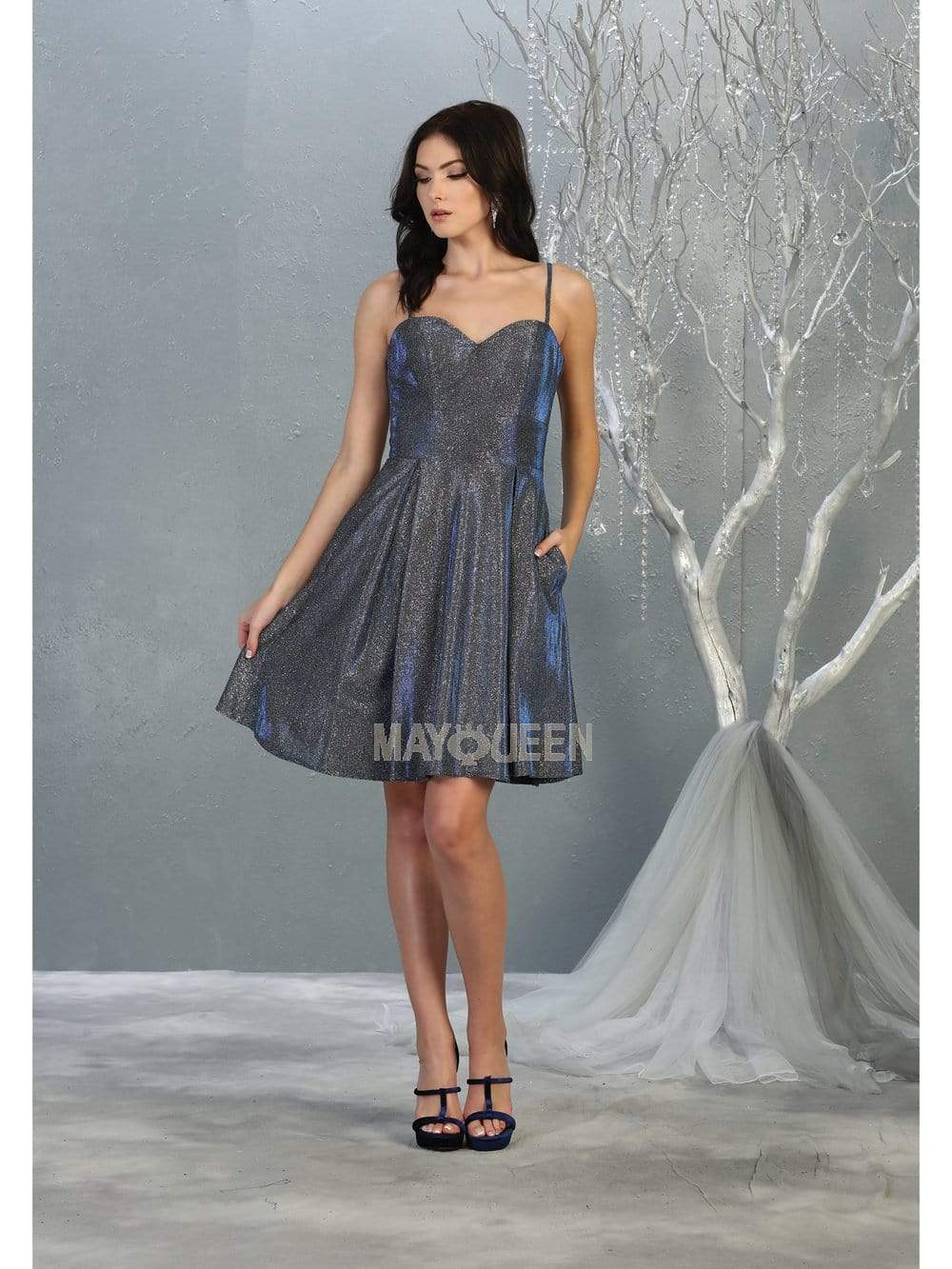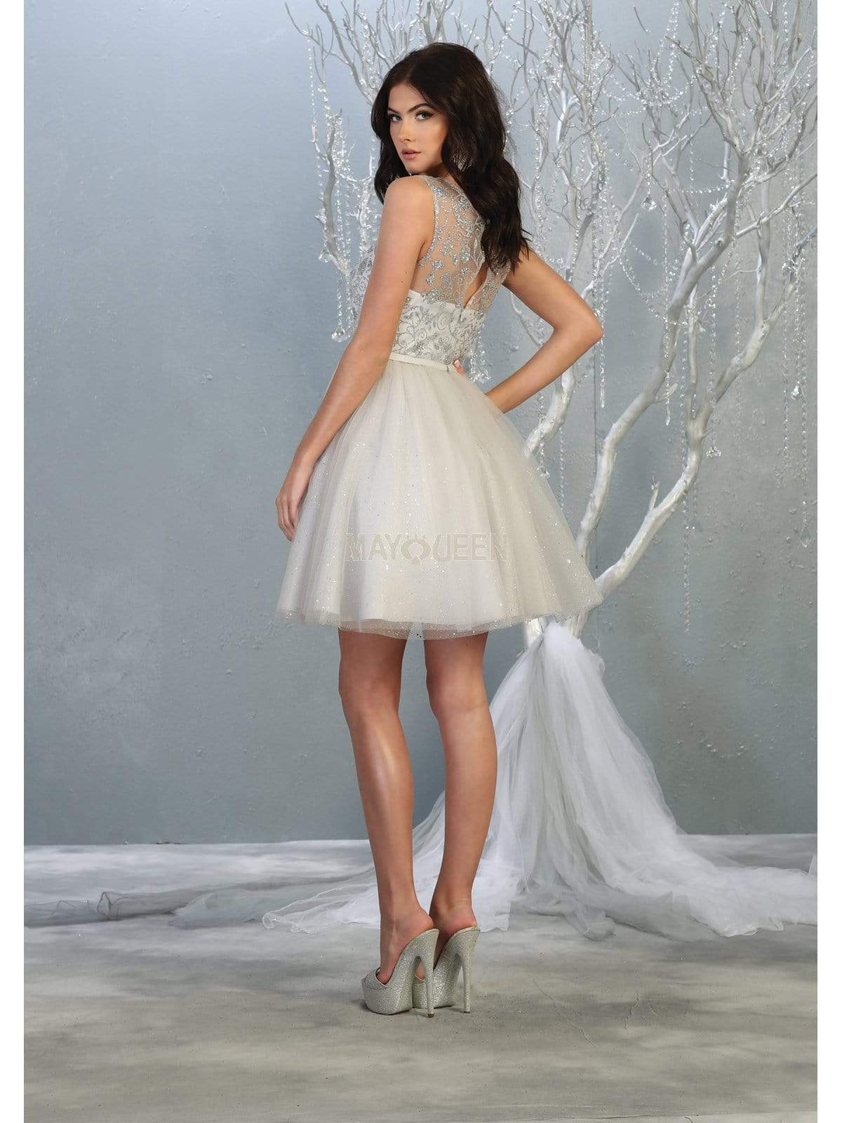 Vestido Corto Cuello en V Profundo Corte-A con Purpurina MQ1702