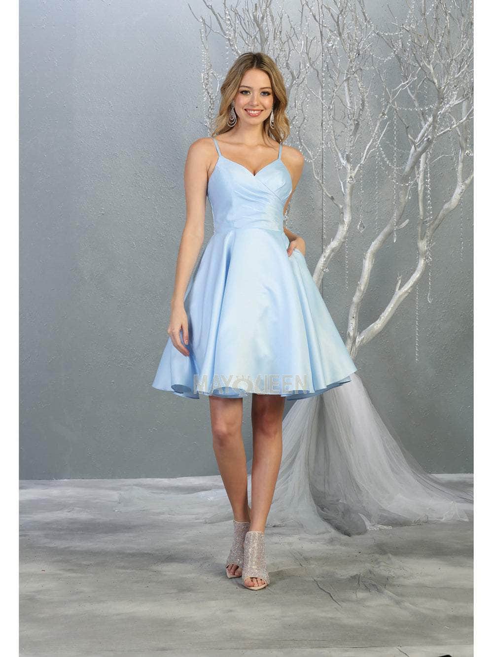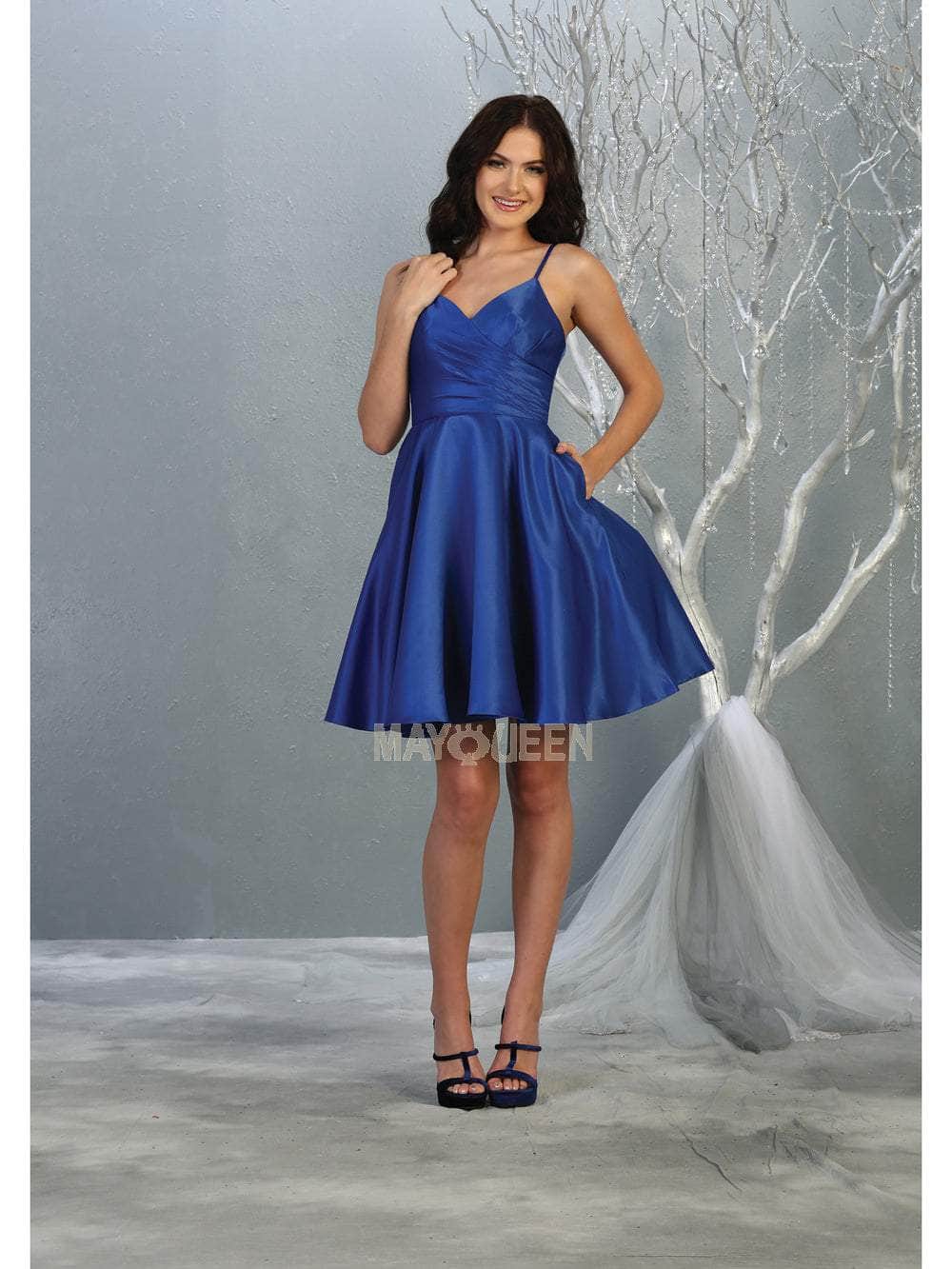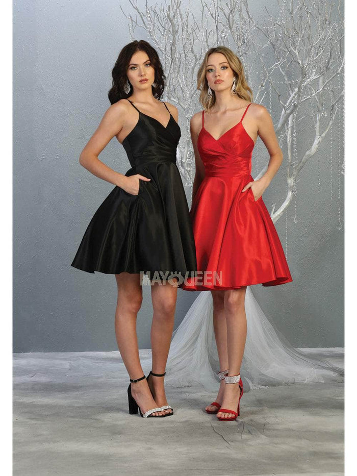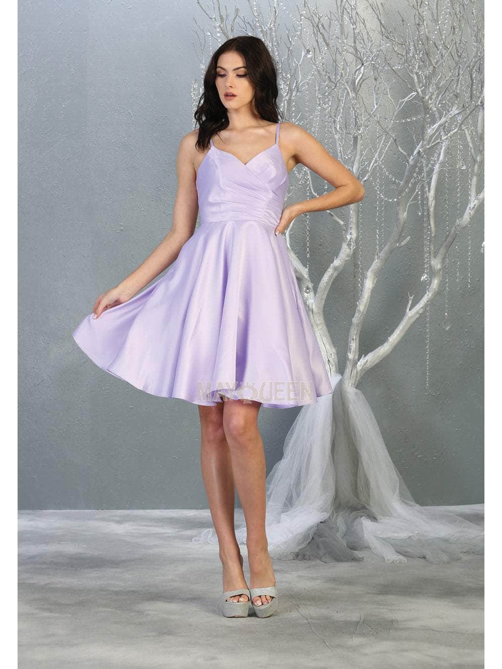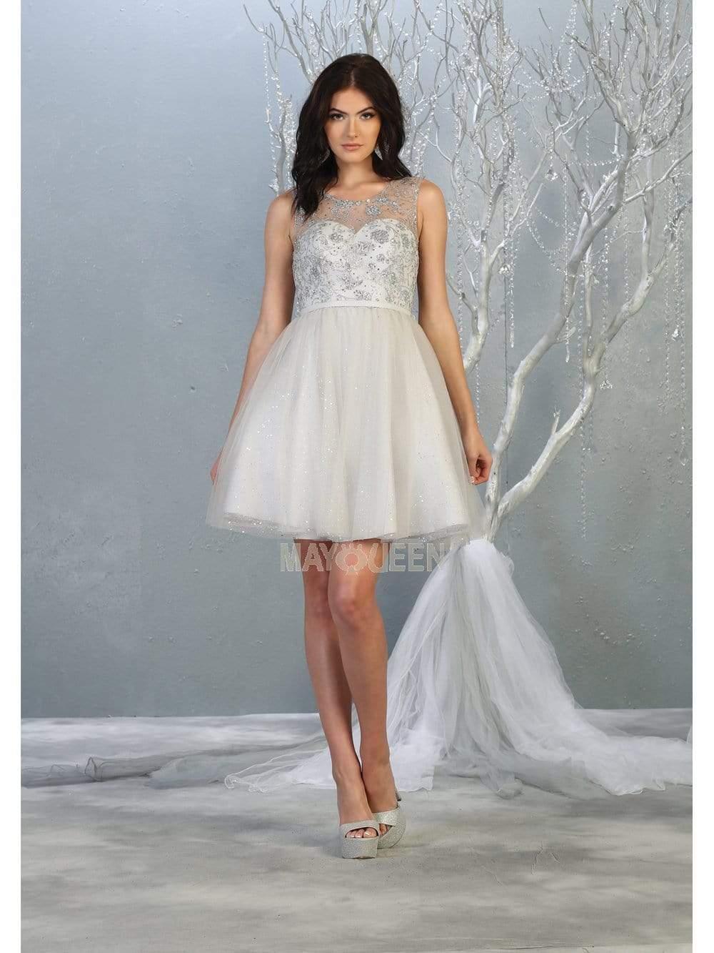Vestido Corto Cuello en V Profundo Corte-A con Purpurina MQ1702