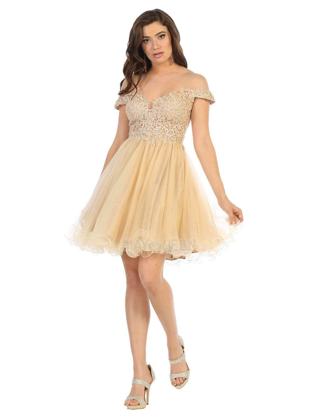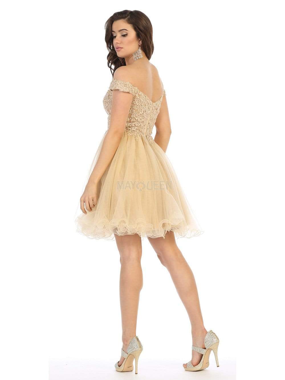 Vestido en línea A con hombros descubiertos bordados MQ1668