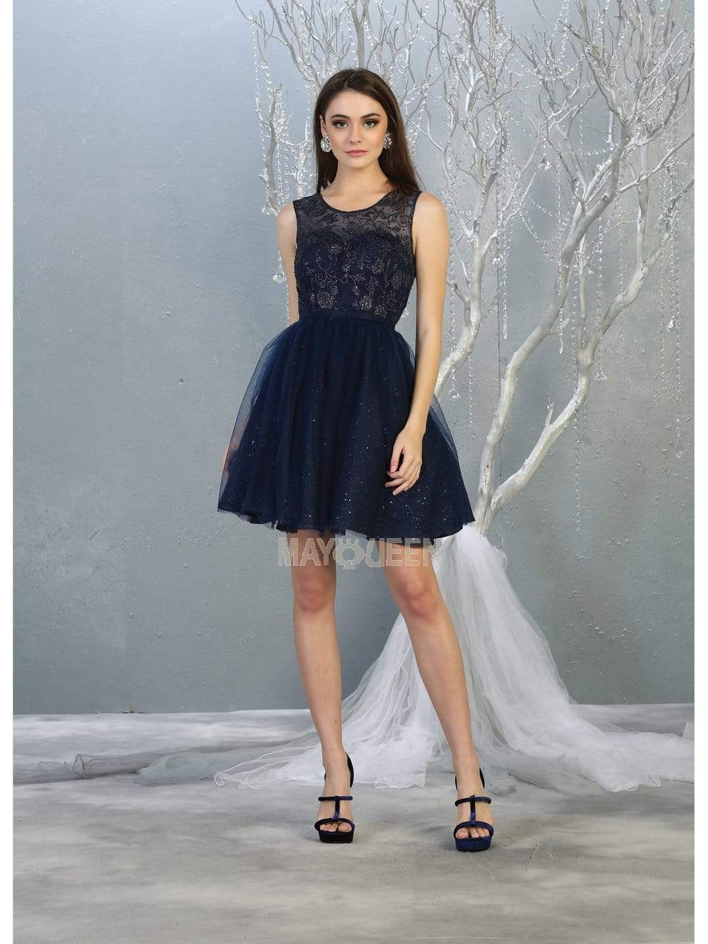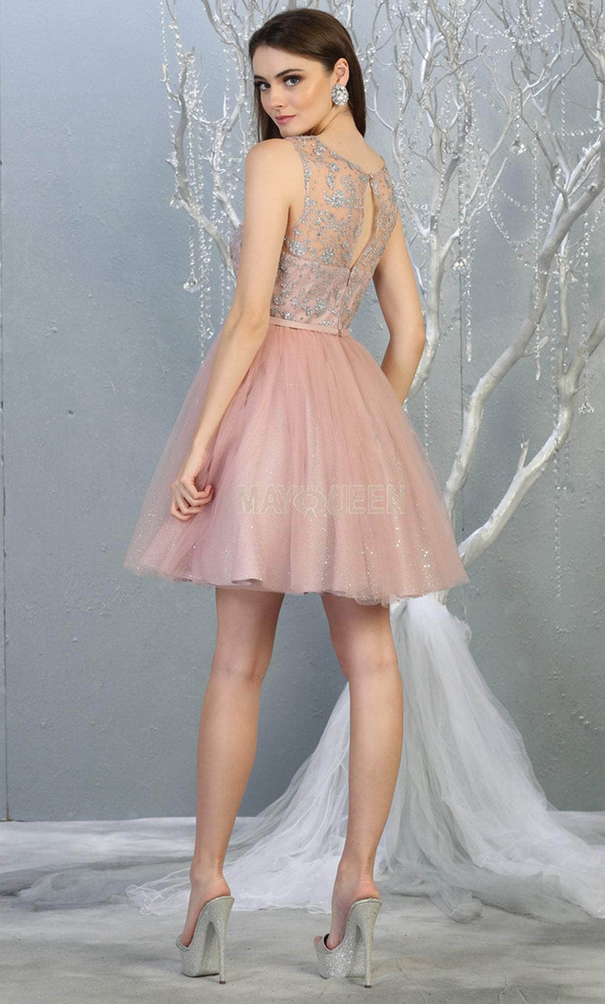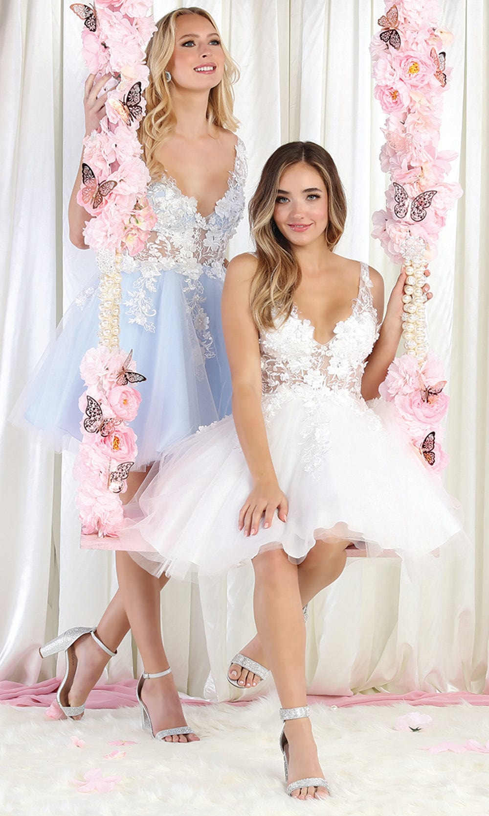 Vestido corto de tul bordado con cuello en V de Nox Anabel G785