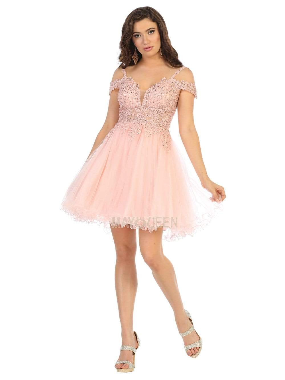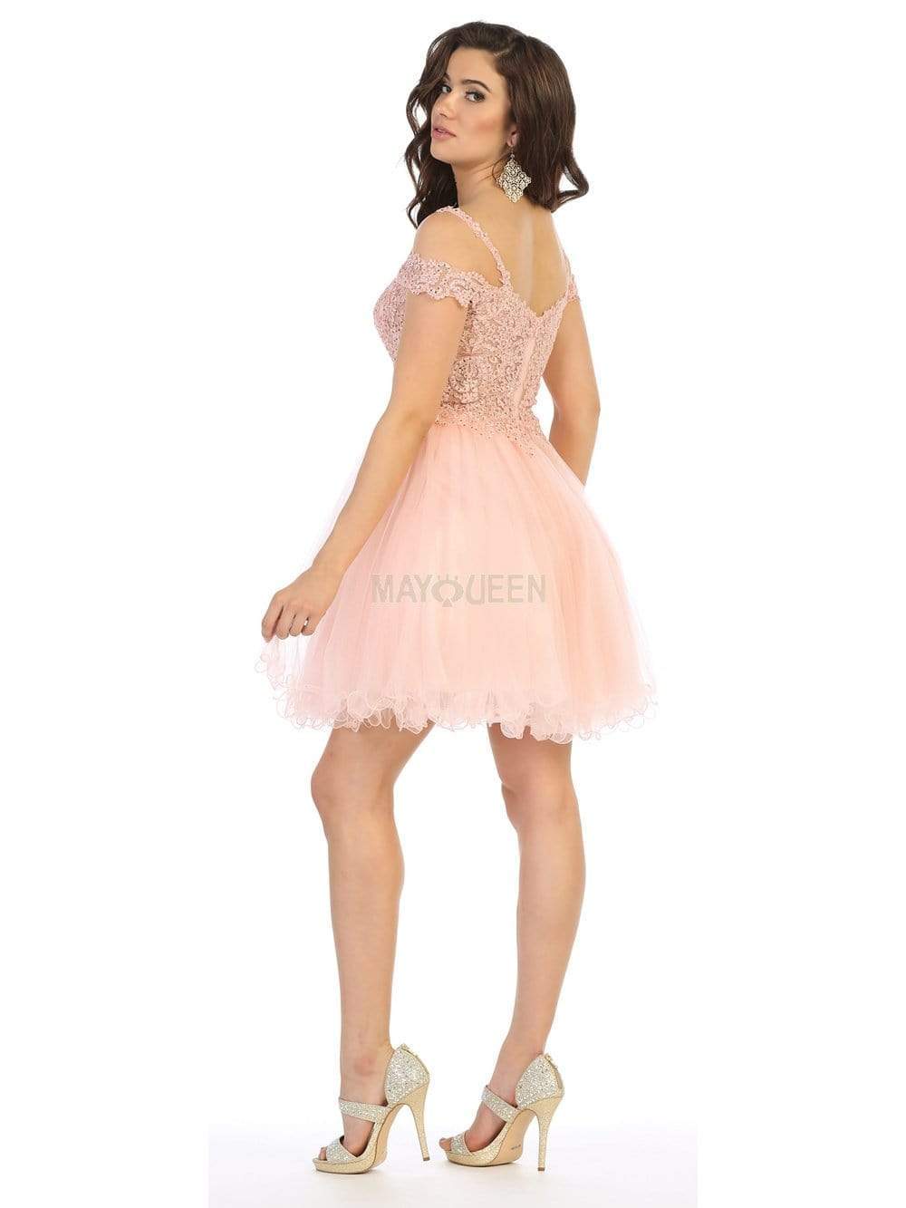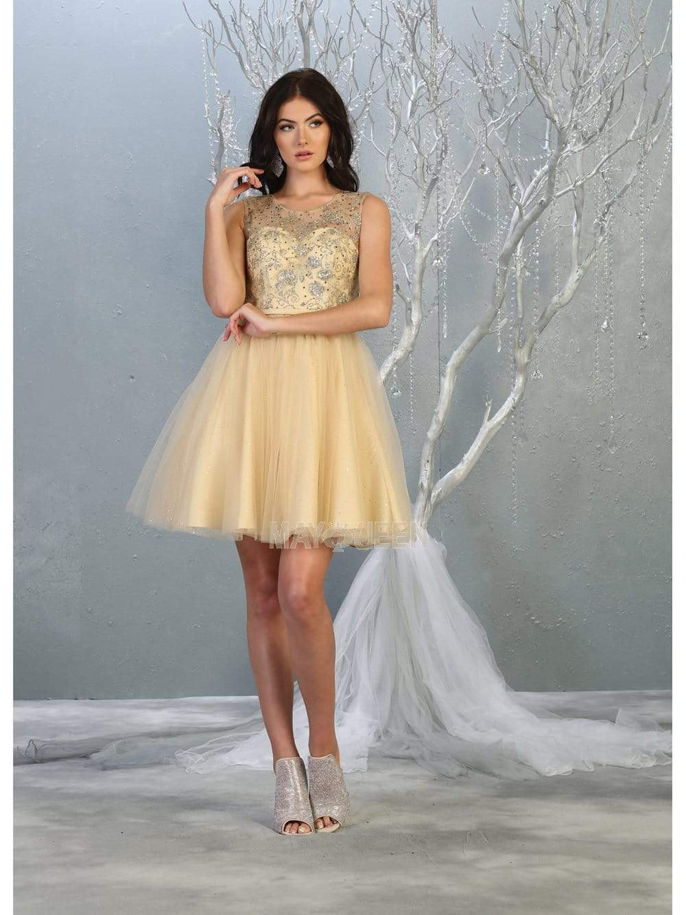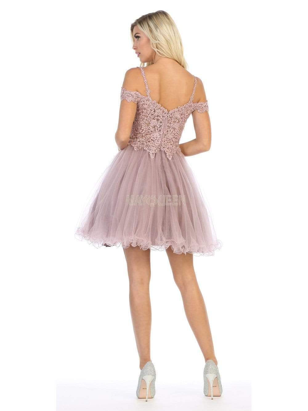 Vestido corto de tul bordado con cuello en V de Nox Anabel G785