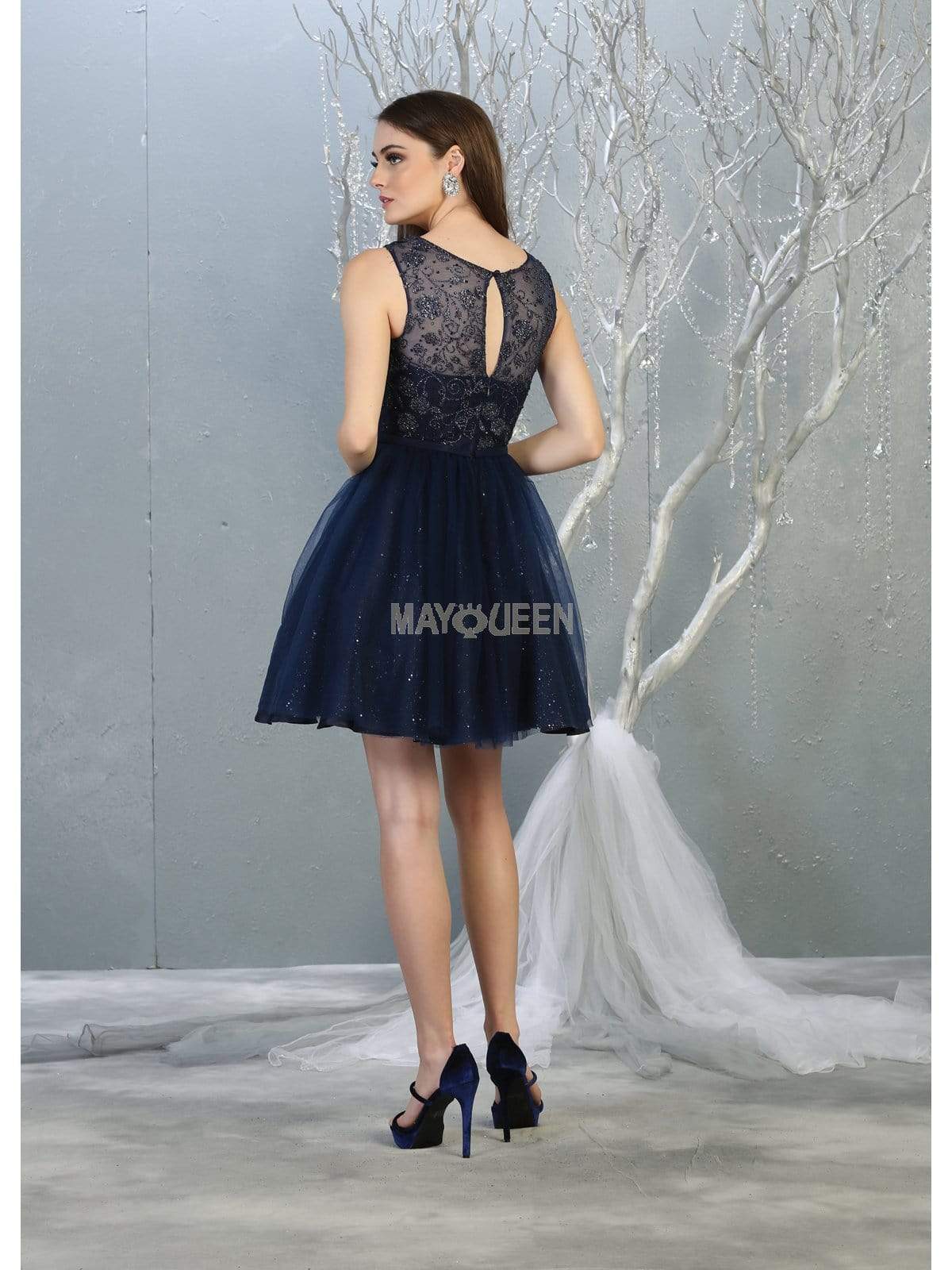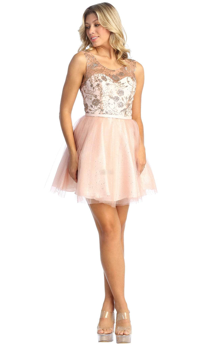 Vestido corto con corpiño de lentejuelas de Nox Anabel R805