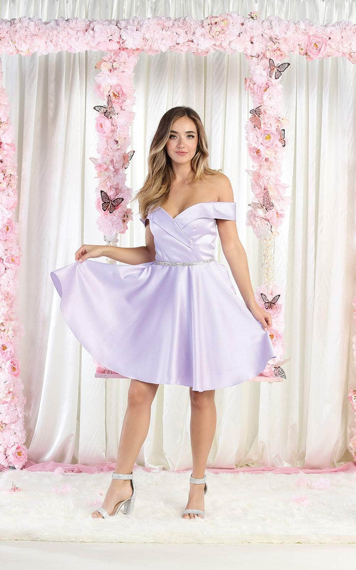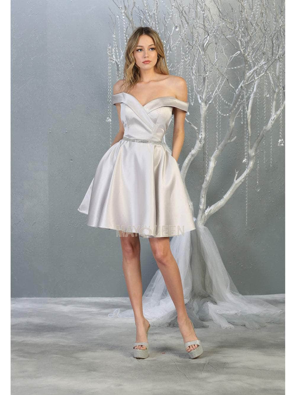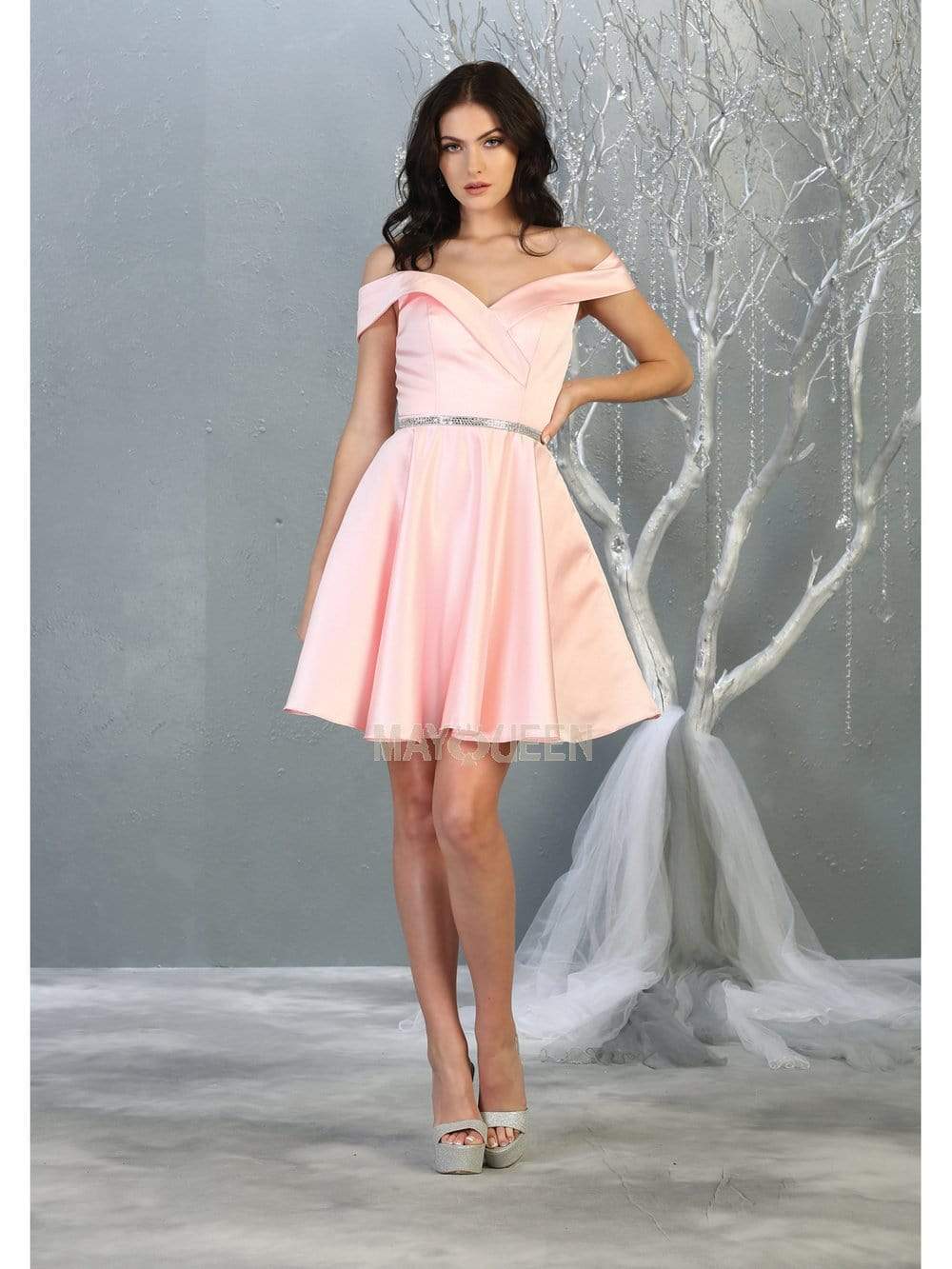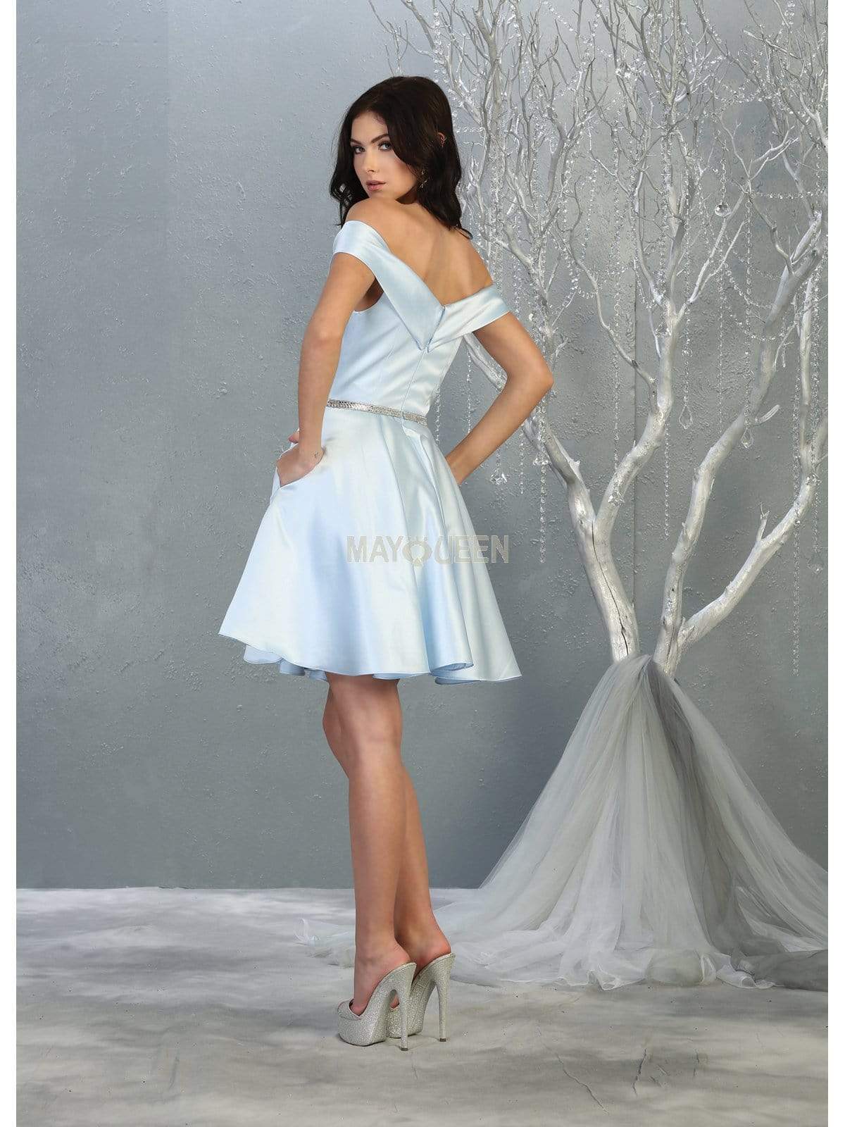 Vestido Corsé Corto de Satén con Hombros al Descubierto de Nox Anabel R799