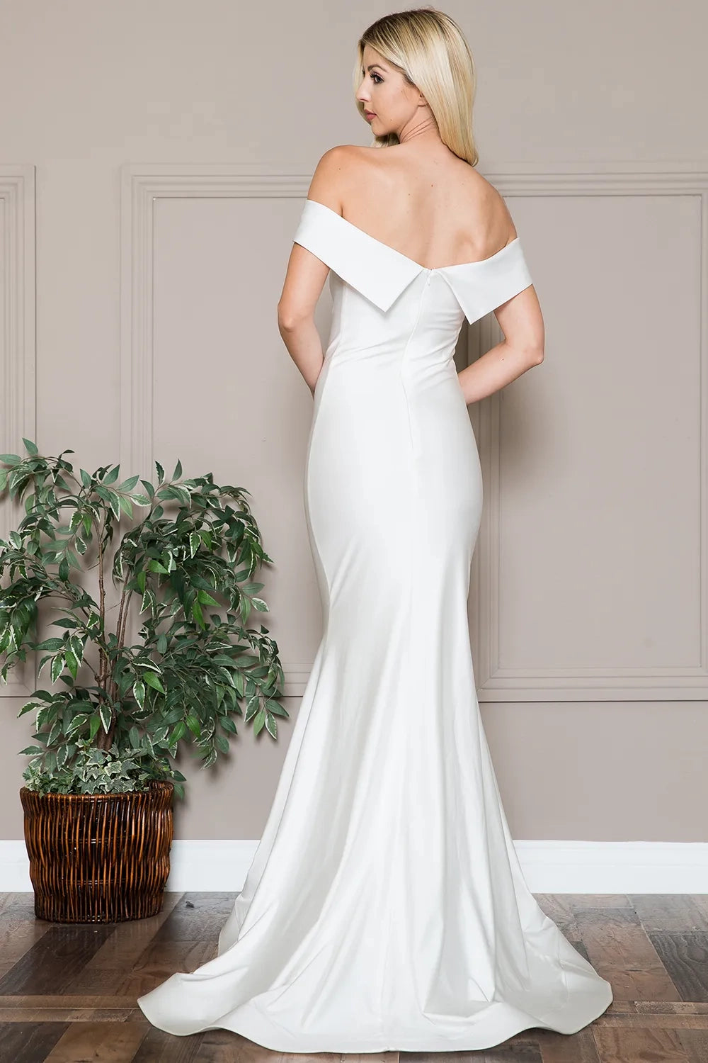 Sencillo y elegante vestido de licra con escote de hombros al descubierto.