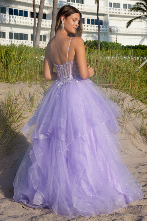 Vestido de corte A con capas y sin mangas de Amelia Couture 5068