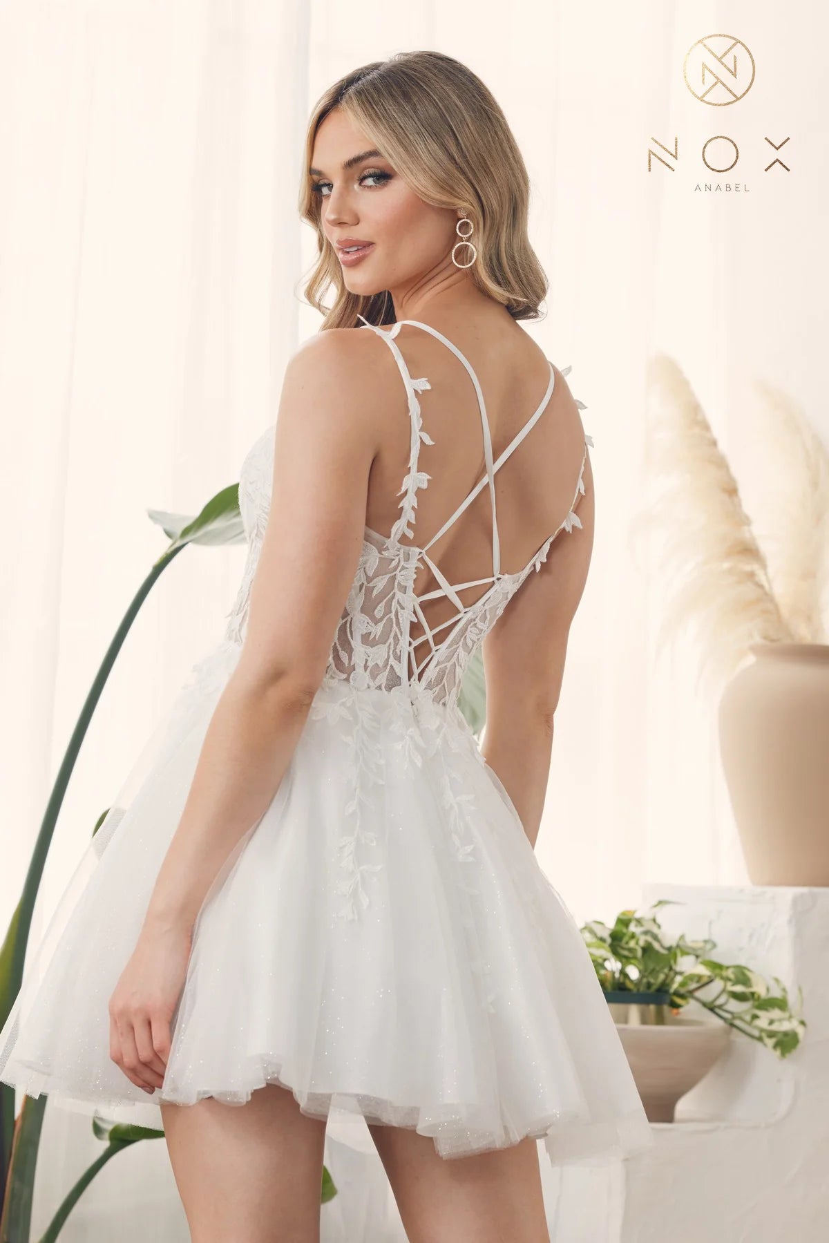 Vestido Blanco corto de tul con corpiño bordado de Nox Anabel B652