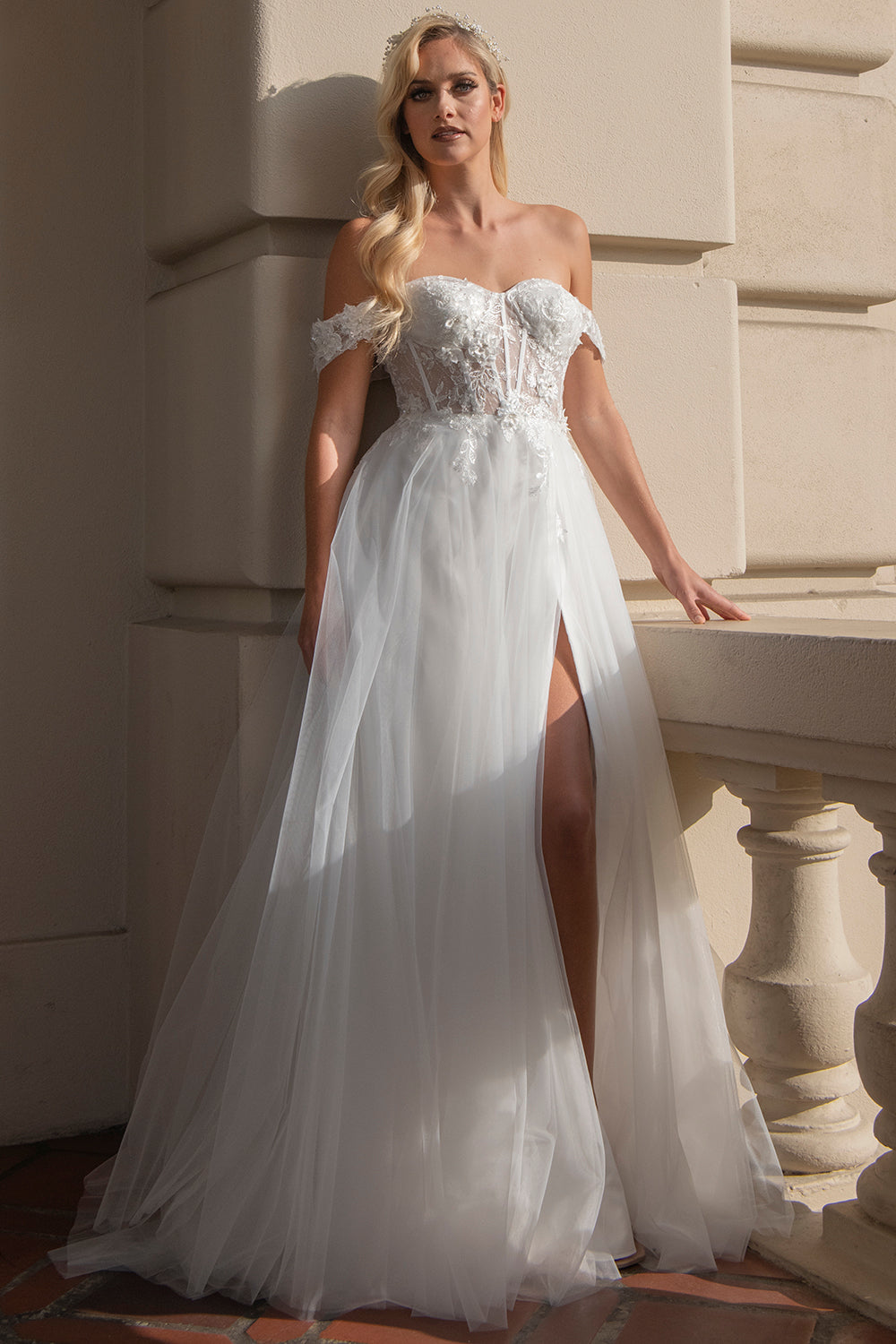 Vestido blanco corsé de satén sin hombros de Ladivine 7492W