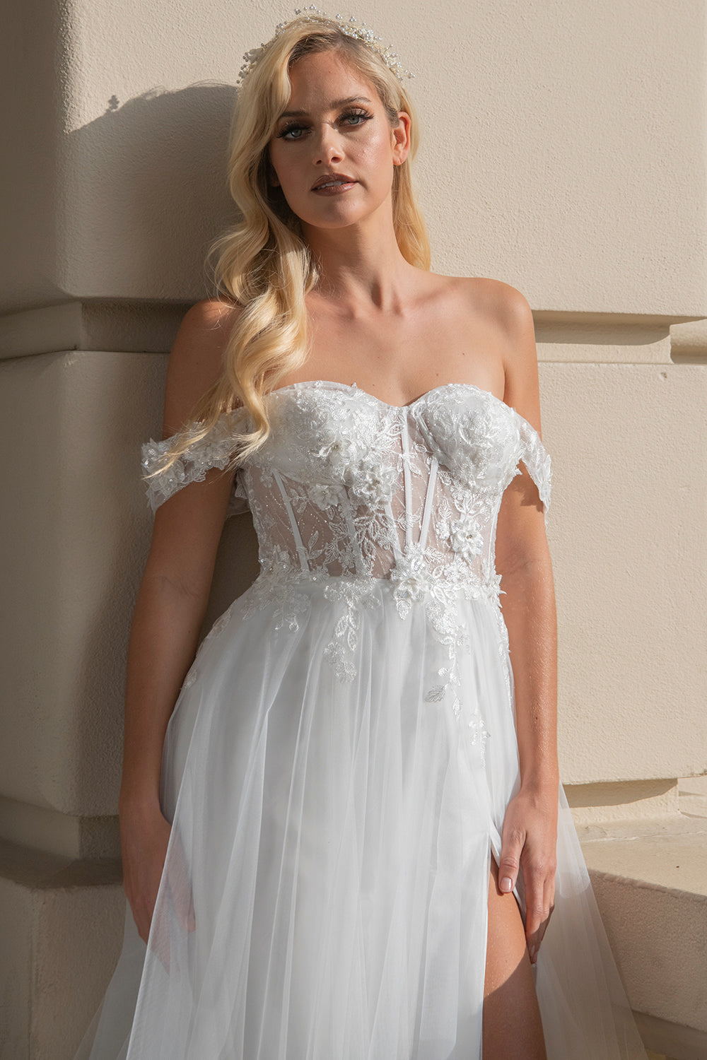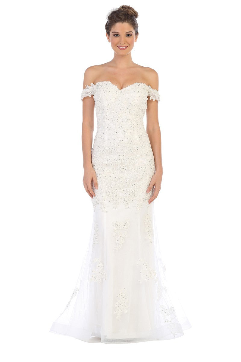 Vestido de novia con hombros descubiertos de encaje de Ladivine 7258W