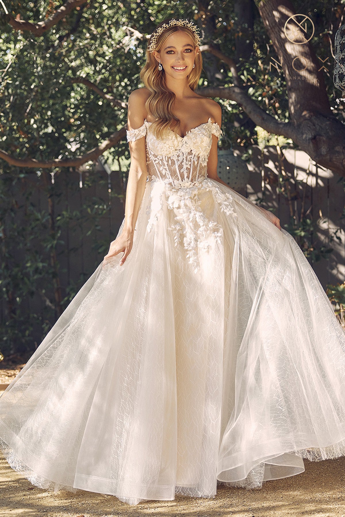 Vestido de novia corsé sin hombros de Nox Anabel C1199W