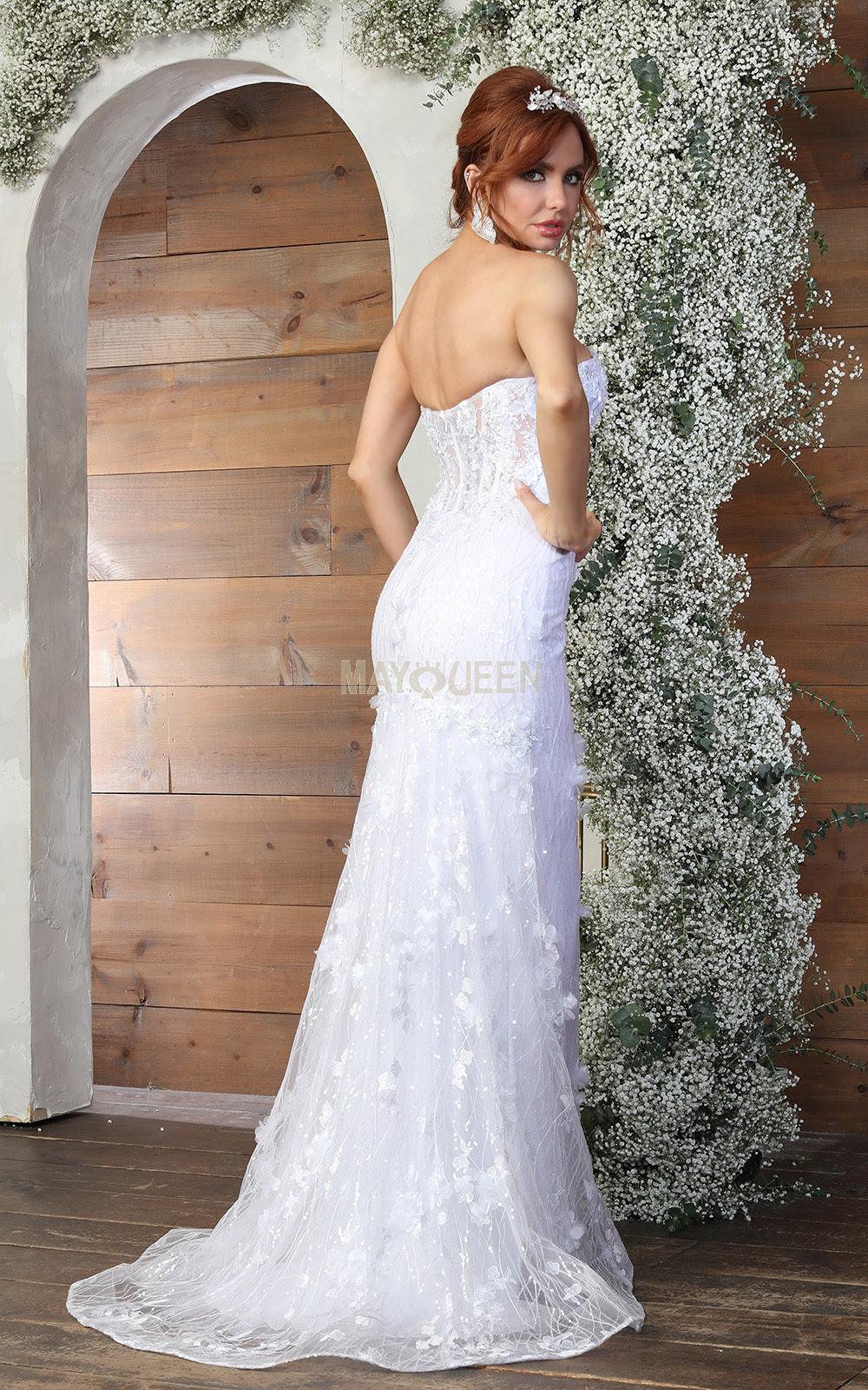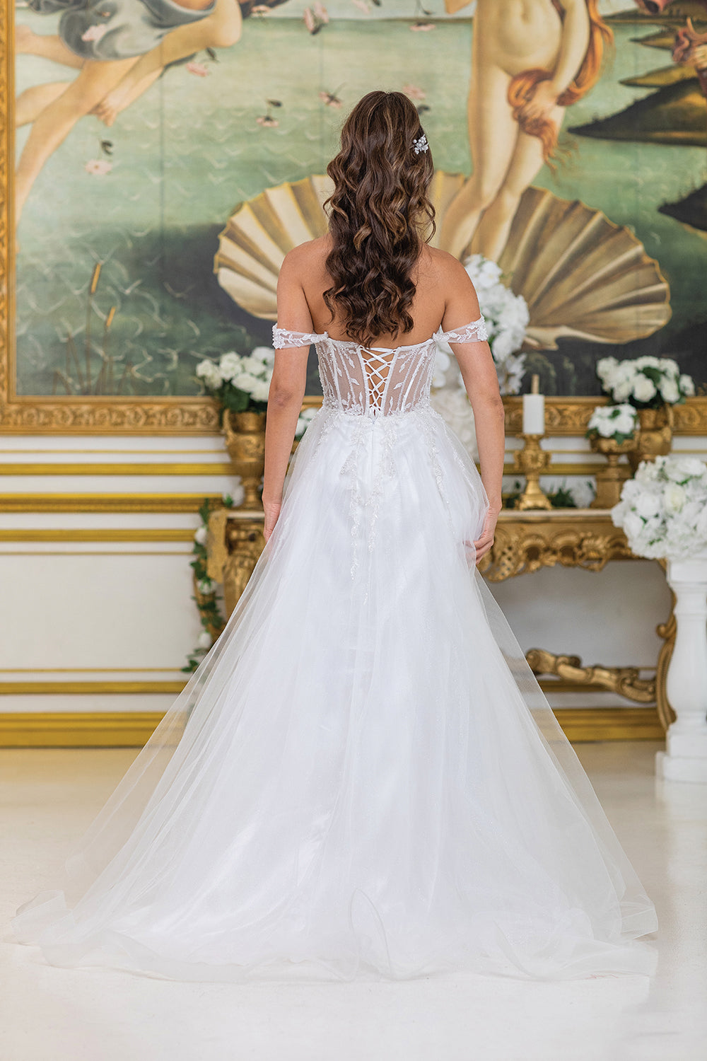 Vestido de novia de tul en capas sin tirantes y encaje de Ladivine CD962W