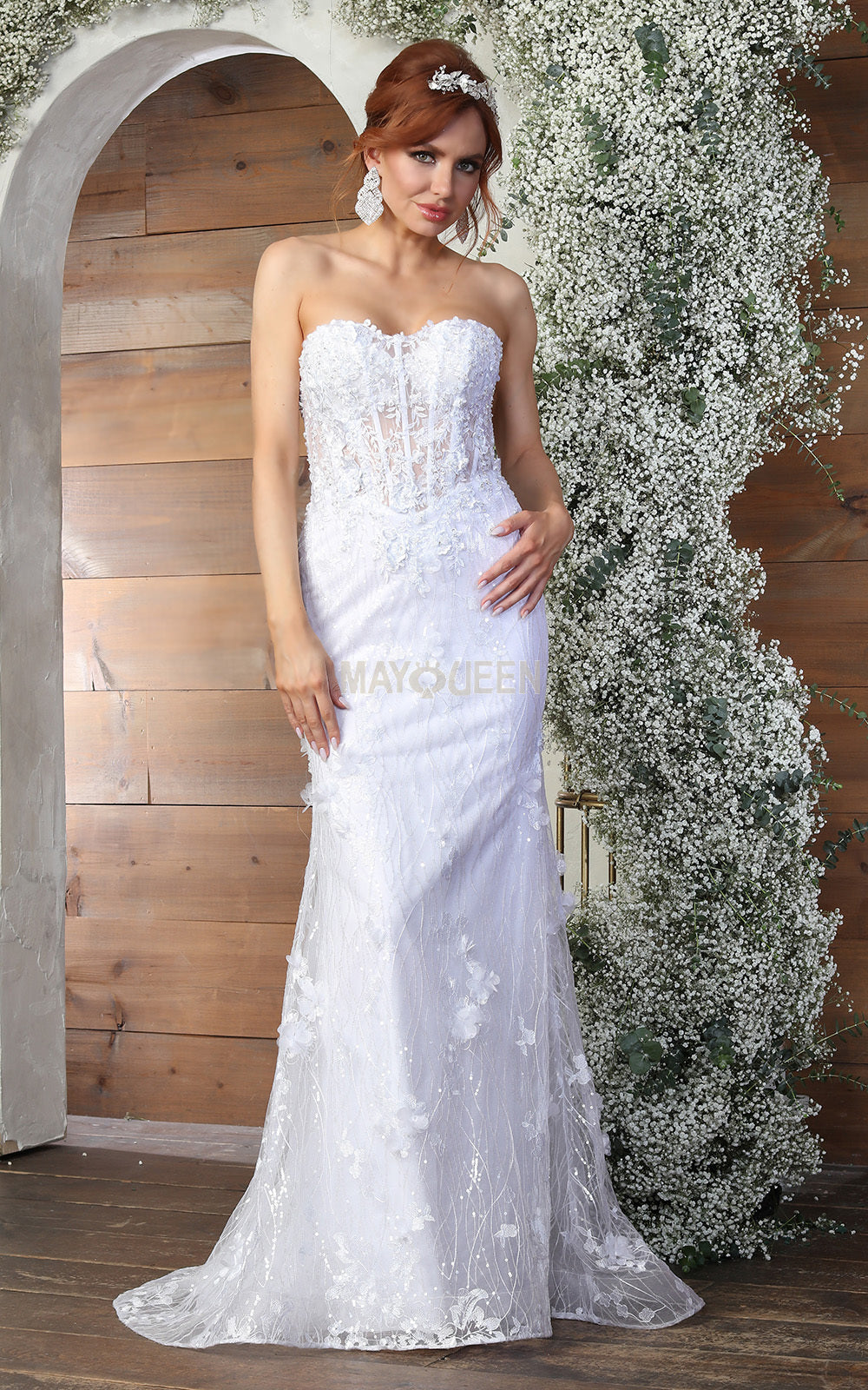 Vestido blanco de encaje corte A CD961W de Ladivine