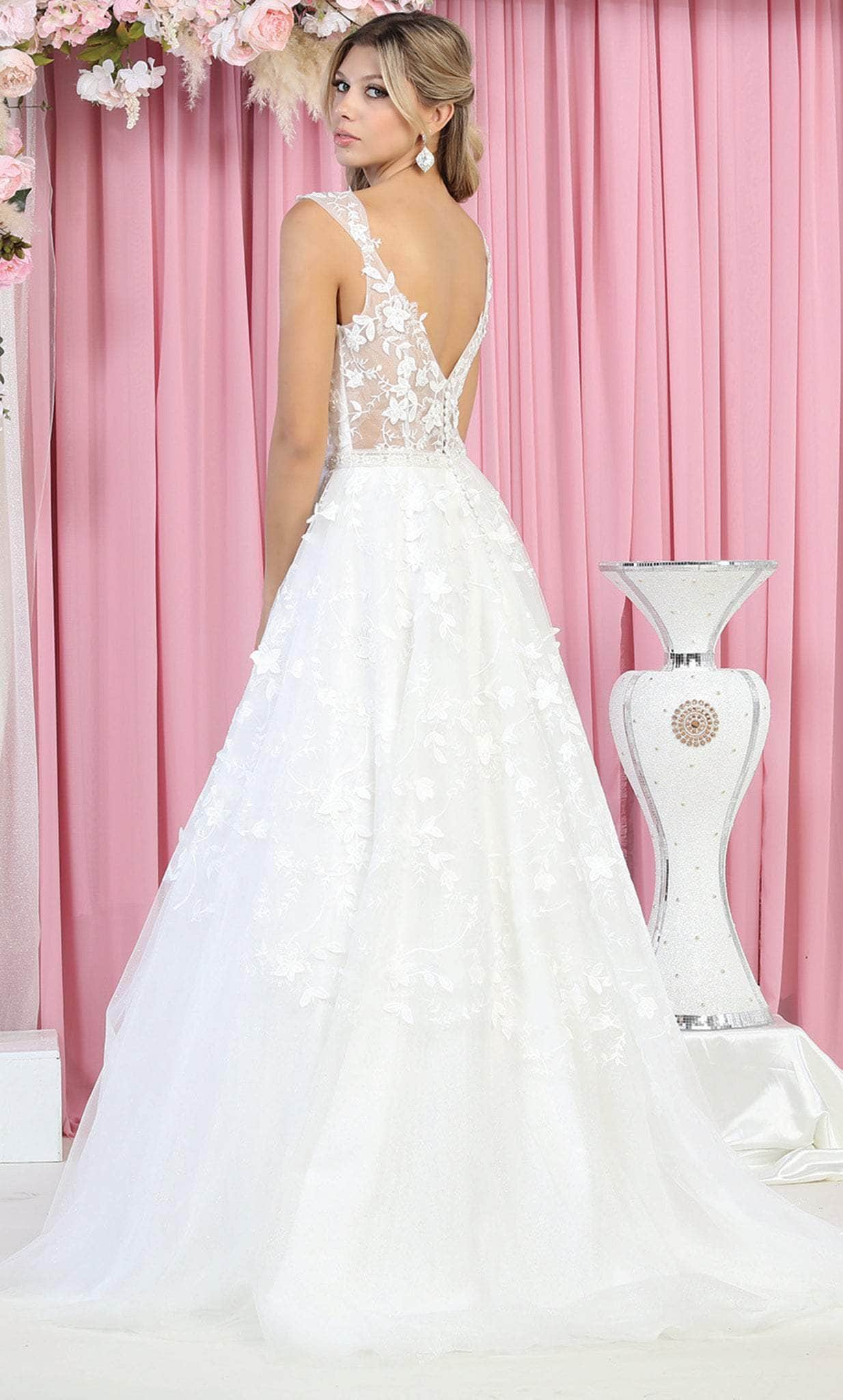 Vestido blanco con Apliques Florales sin Hombros de Nox Anabel JE953