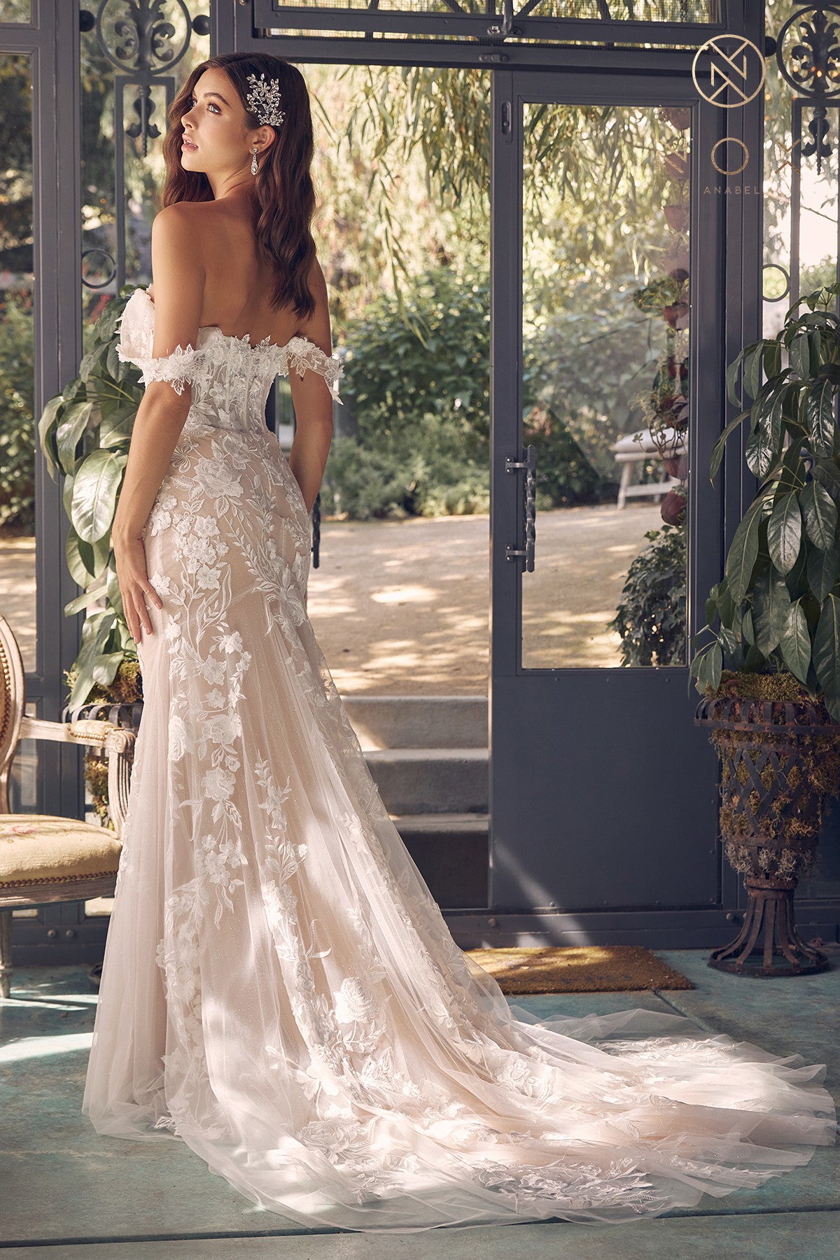 Vestido de novia con hombros descubiertos de Nox Anabel JW979