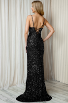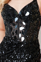 Luzca impresionante con este vestido largo de lentejuelas sin mangas con cuentas de espejo y falda con abertura ajustada de Amelia Couture 55. Este glamuroso vestido de lentejuelas con abertura alta presenta un corpiño inspirado en un corpiño adornado con cuentas de espejo, escote en V sin mangas y espalda abierta con cordones y cierre de cremallera.