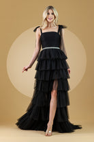 Vestido de fiesta sin mangas con volantes y aberturas, Amelia Couture 6125