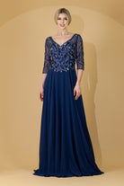 Luzca un look inolvidable con este vestido largo de gasa con cuello en V y manga 3/4 bordado con abalorios y falda Corte
