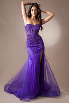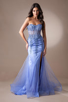 Vestido de fiesta ajustado con aberturas sin tirantes y cuentas de Amelia Couture 7051