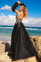 Le encantará dar vueltas con este vestido largo de manga abullonada sin tirantes con bordado floral y falda con corte