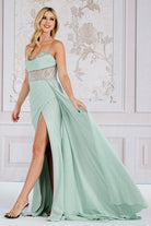 Vestido de noche corsé sin tirantes con cuentas de Amelia Couture TM1005